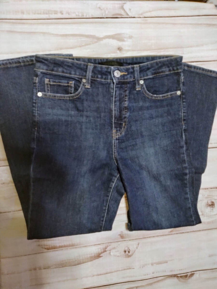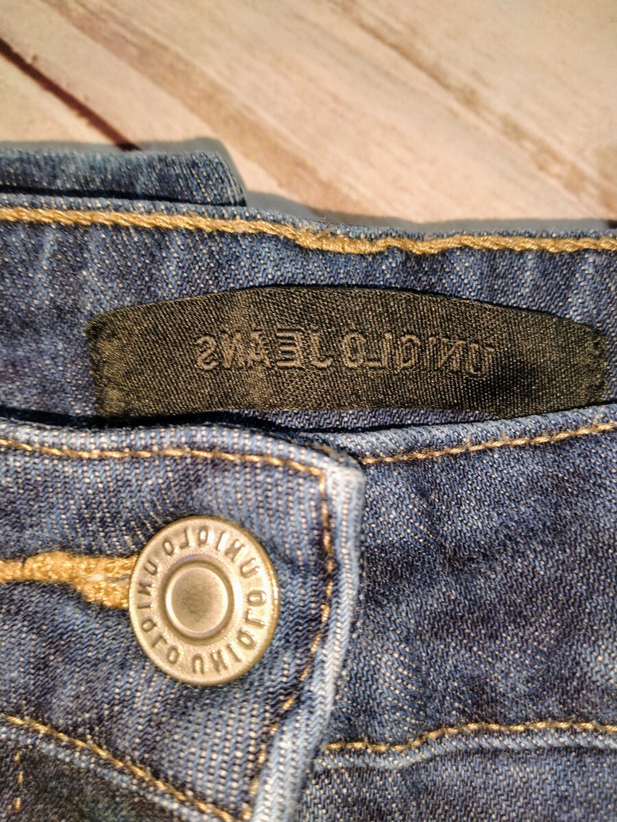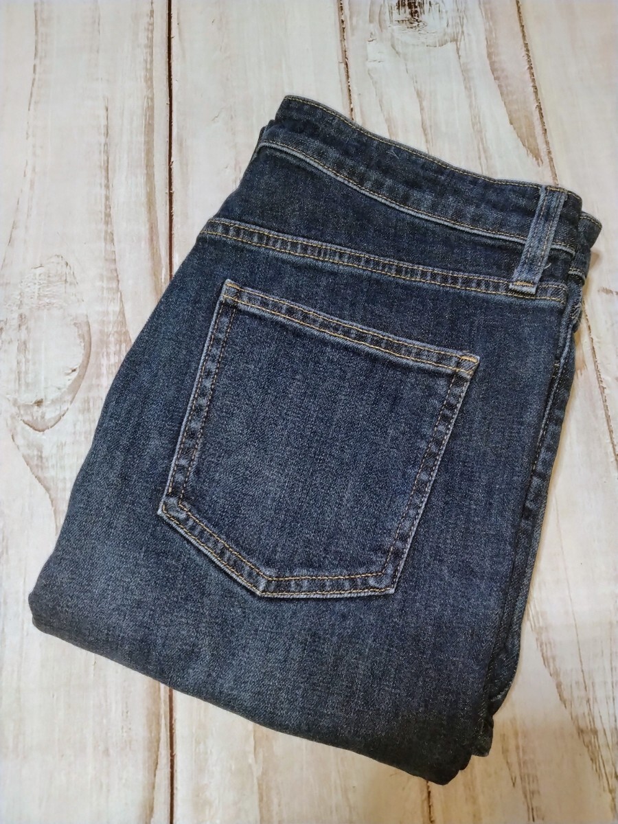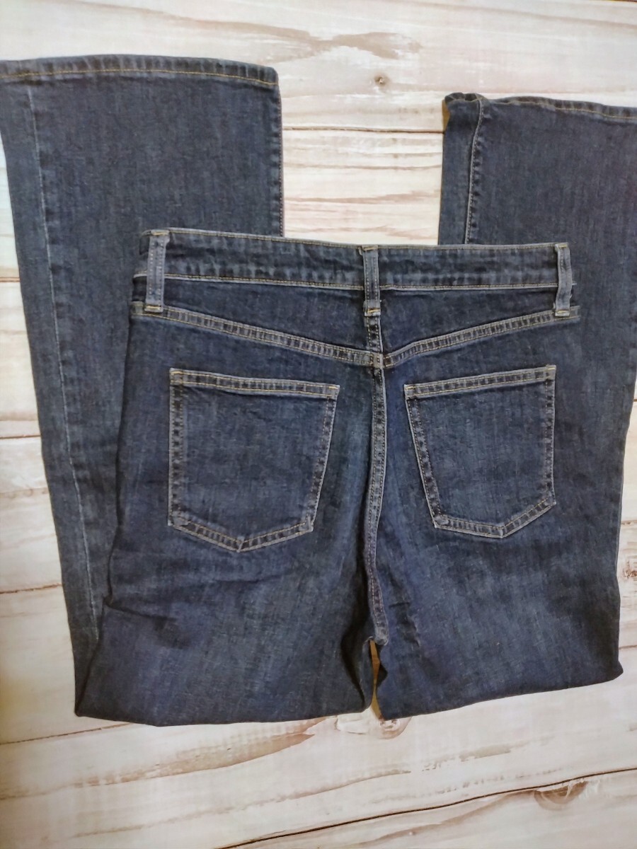 ユニクロデニムパンツ ジーンズ ブーツカット紺色 レディース中古 古着リメイクにも