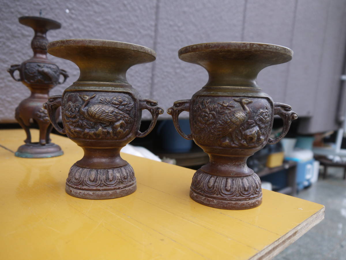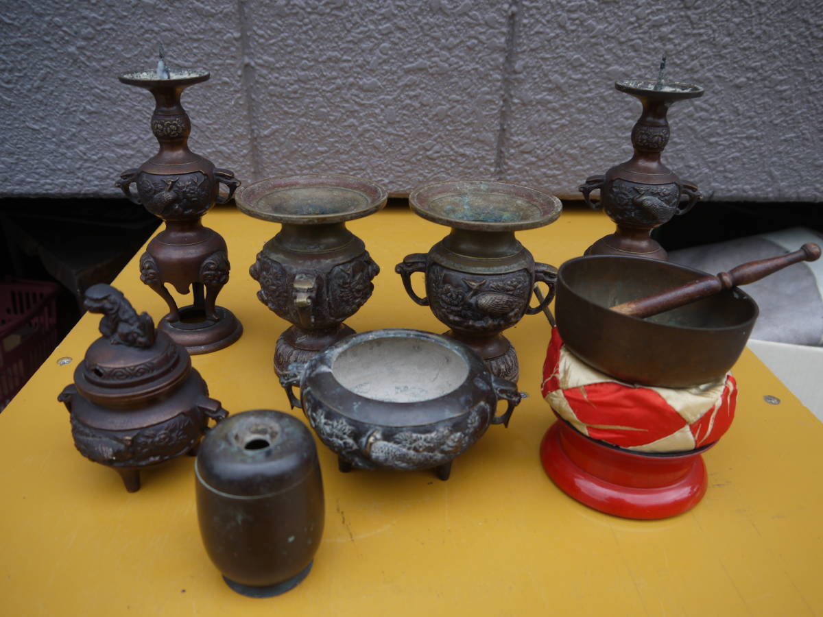 ☆【TS20306】仏具 五具足 香炉 花立 燭台 おりん 線香立て マッチ消し 仏具一式6点 時代