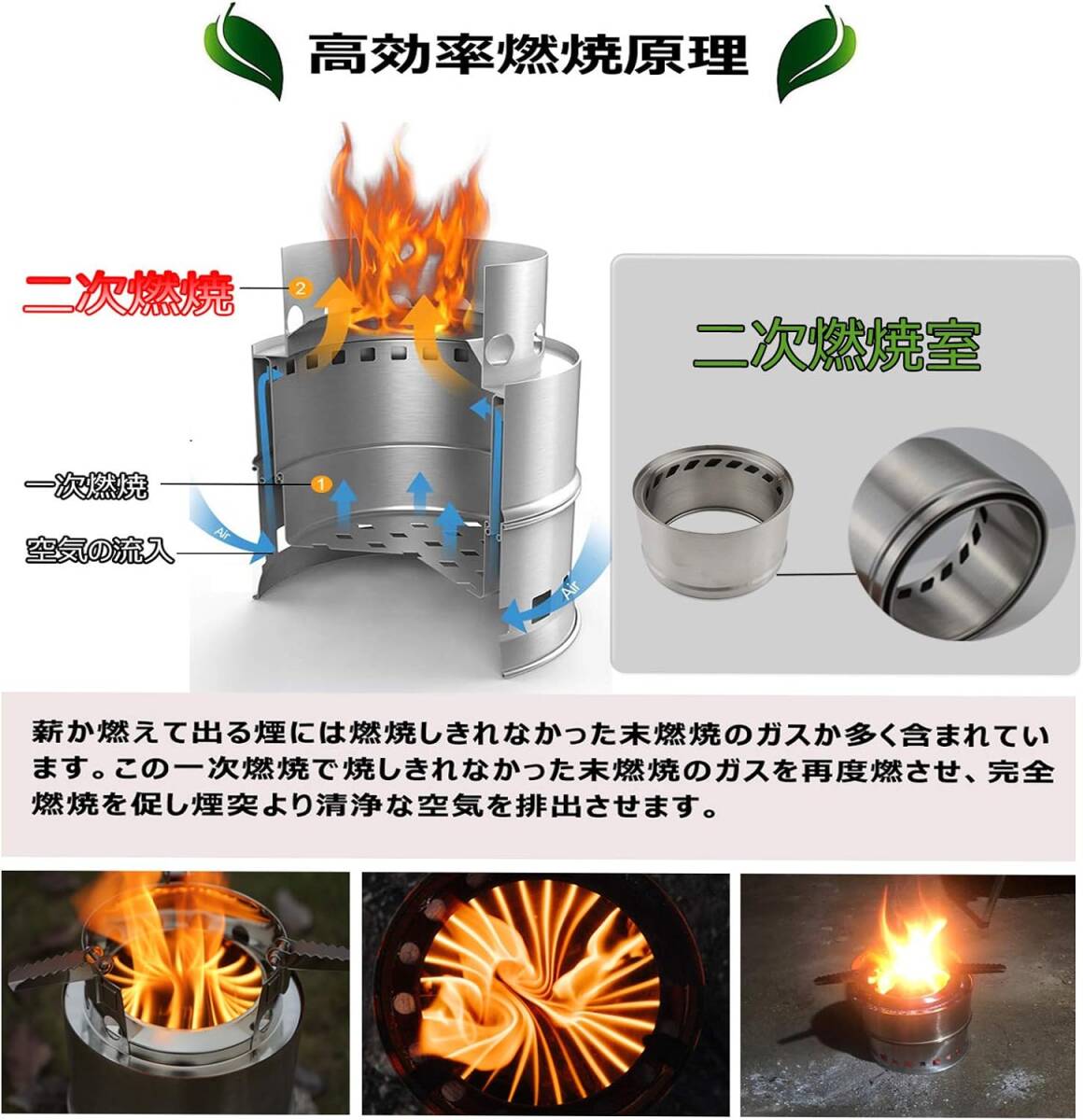 キャンプストーブ 小型 ウッドストーブ 二次燃焼 五徳コンロ ソロストーブ 焚火台 アウトドア携帯コンロ 軽量ストーブ 燃料不要 収納パック付 火吹き棒付き B0CTBV9DWT