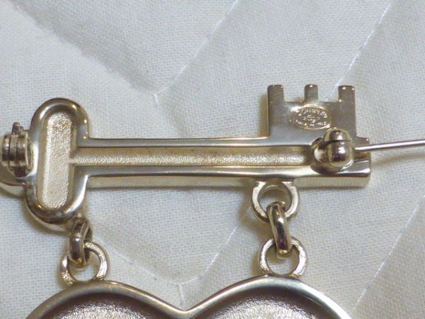 ブローチのお色はつや有りゴールド  全長は約6cm  鍵型は部分は約4cm×1.5cmほど
