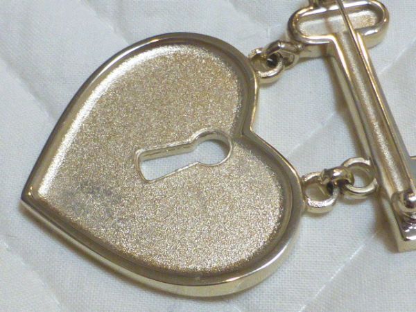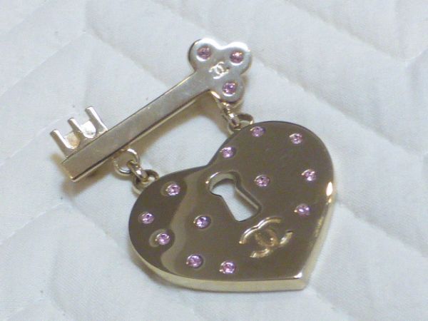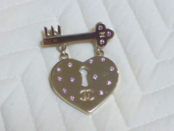 「宅急便コンパクト」送料無料◇シャネル CHANEL◆ハート型鍵穴ラインストーン ブローチ(USED・難あり)◆