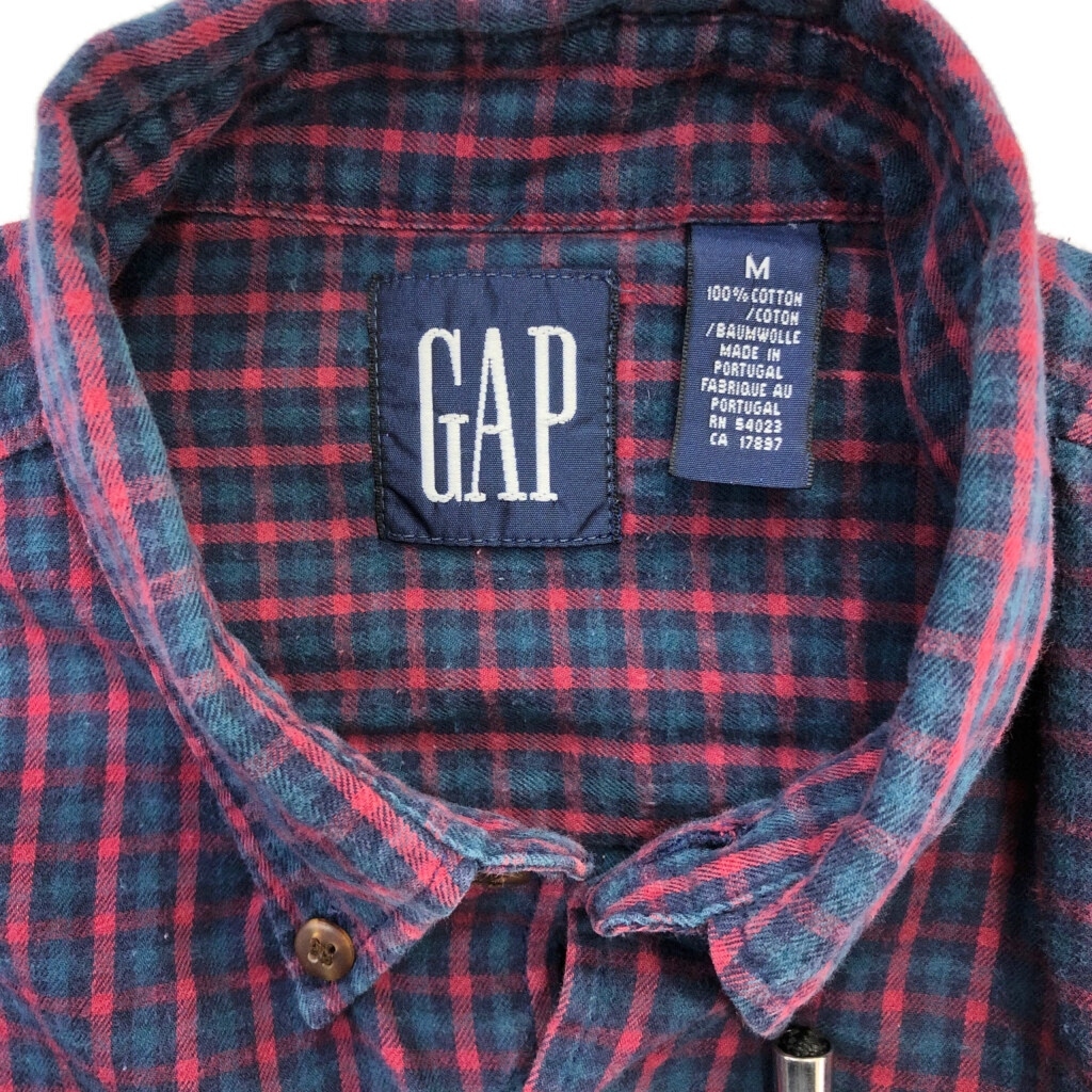 | [商品管理番号] S9798 [ブランド] GAP/ギャップ [サイズ] M [実寸サイズ] 肩幅:約50cm 着丈:約75cm 身幅:約60cm 袖丈:約56cm [主な素材] 表地 : コットン [色] ネイビー [仕様] 90年代 ボタンダウン オールドギャップ チェック [状態] 破れ:裾 特記事項:毛羽立ち | |||