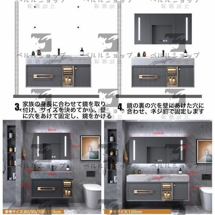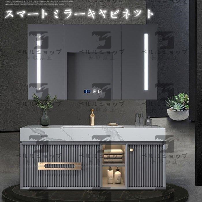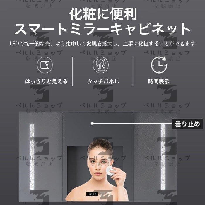 ★多機能ミラーキャビネット:LED鏡、 曇り止め、時間温度表示、収納