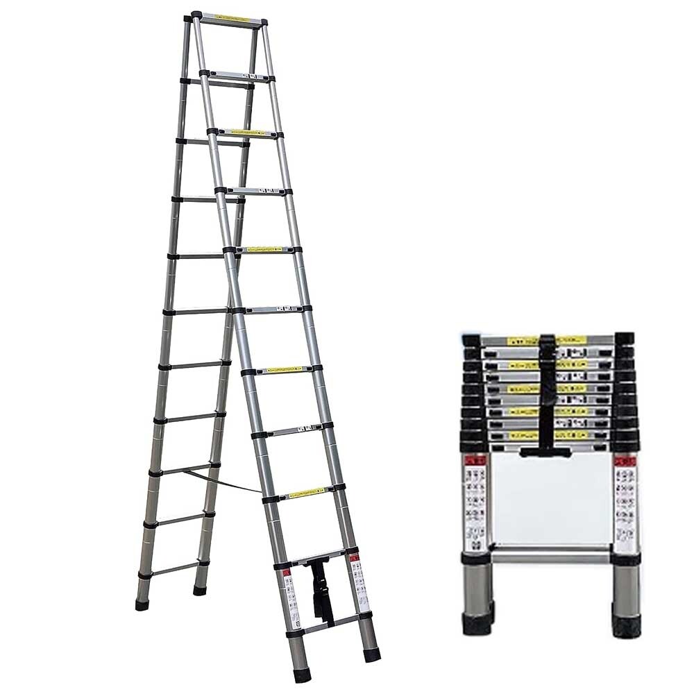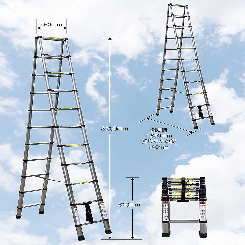 伸縮脚立 最長3.2m 11段+11段 踏み台 折りたたみ 折り畳み 伸縮アルミはしご 持ち運びに便利 自動ロック 安全ロック 安全クロスバー スライド式 アルミ梯子 ホームロフトオフィスに適合 軽量 耐荷重100 kg 室内室外両用 | |