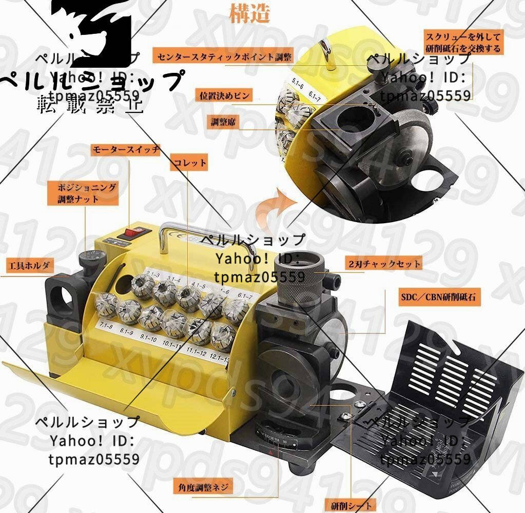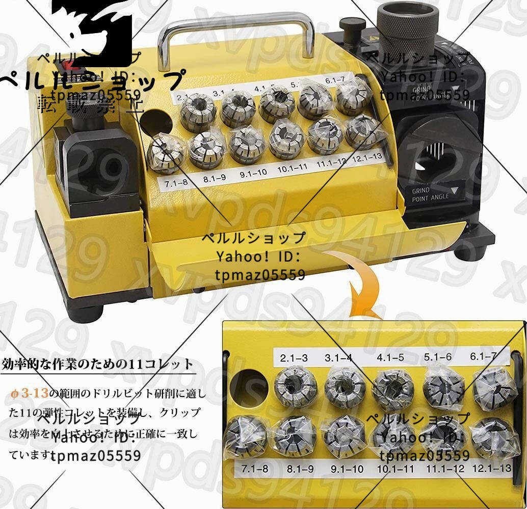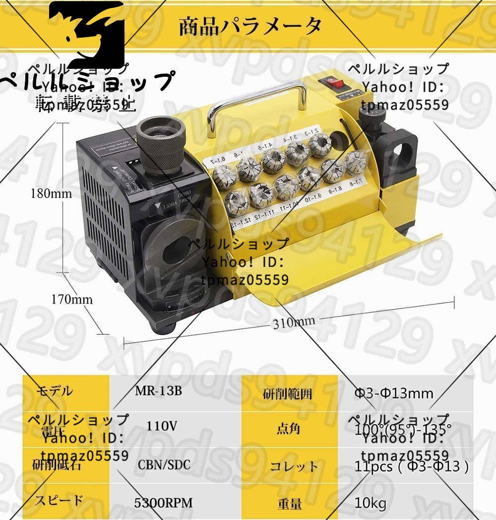 仕様: 研削範囲:ф3-ф13 点角度:100°(90°)~135° 速度:5300RPM 標準シリンダー:ф3、ф4、ф5、ф6、ф7、ф8、ф9、ф10、ф11、ф12、ф13(11個) オプションのコレット:ф3.5、ф4.5、ф5.5、ф14、ф15(これらのチャックは別途購入する必要があり、この製品セットには含まれていません) パッキングサイズ:31 × 17 × 18cm 重量:10kg パッケージ内容: 13Bドリルビット研削盤*1 SDCまたはCBNサンドシート*1 ER20コレット*11 アレンレンチ*1 チャックセット*1 取扱説明書*1