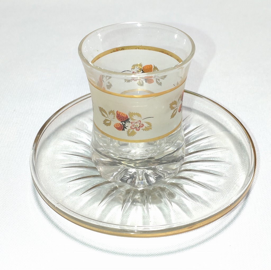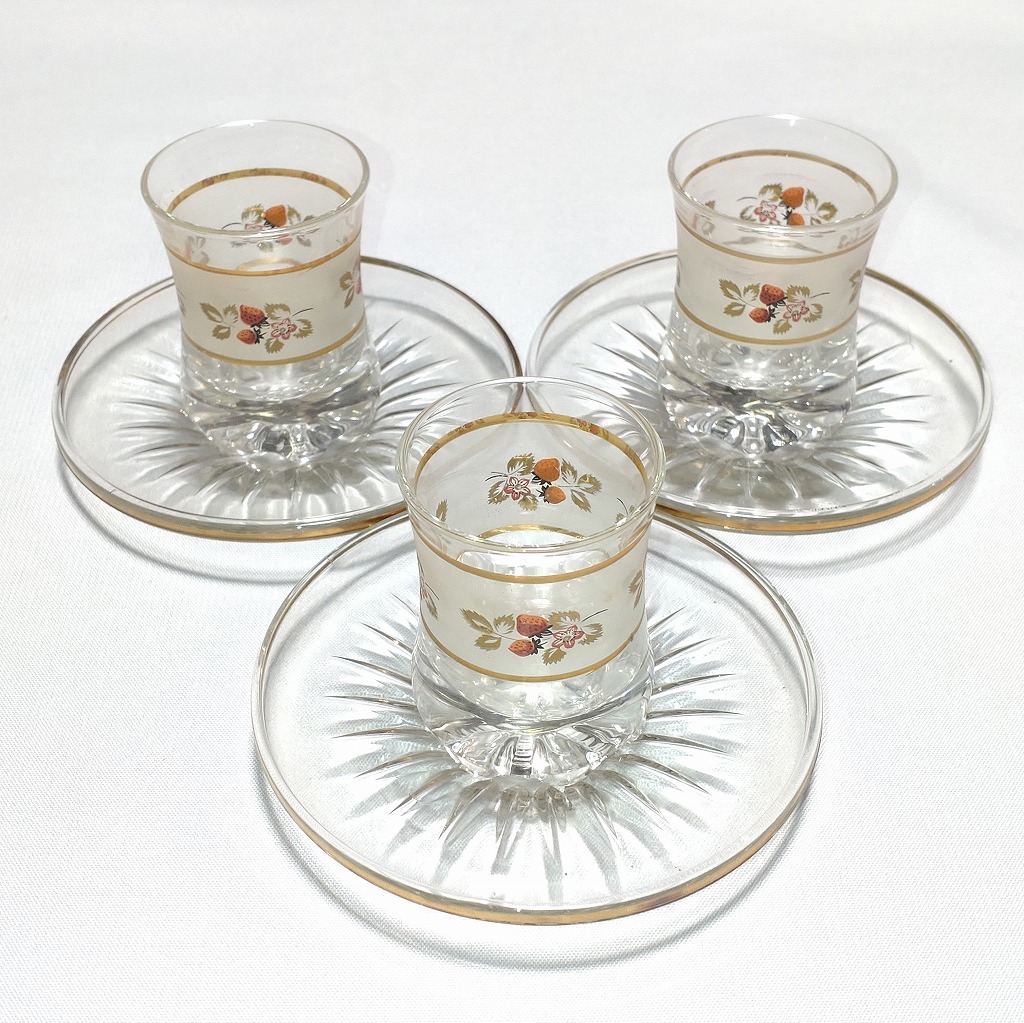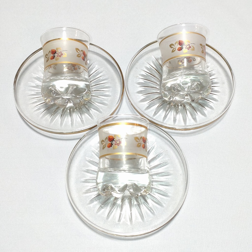 硝子製 カップ&ソーサ 3客セット グラス イチゴの絵柄 LiNEADECOR イタリア製 口径約4.5cm 高さ約6.4cm ソーサの直径約11cm 【4872】【o】