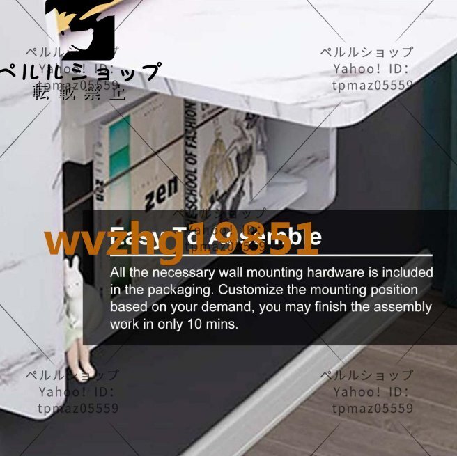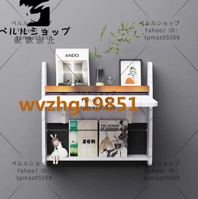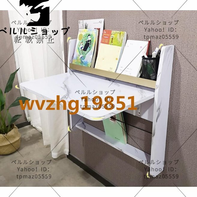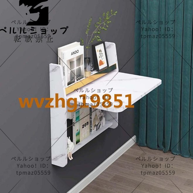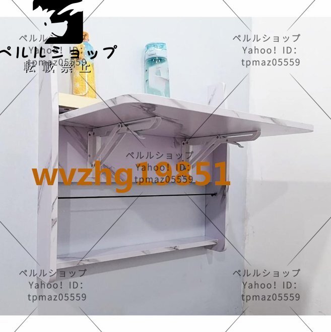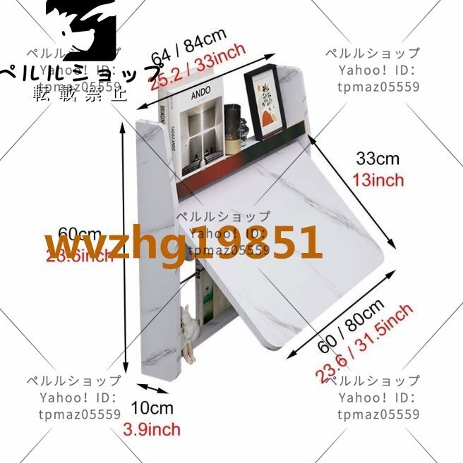 壁掛け折りたたみテーブル 長方形の木製の壁に取り付けられたドロ 64cm幅 大理石の質感のモダンでシックな折りたたみ式フローティン