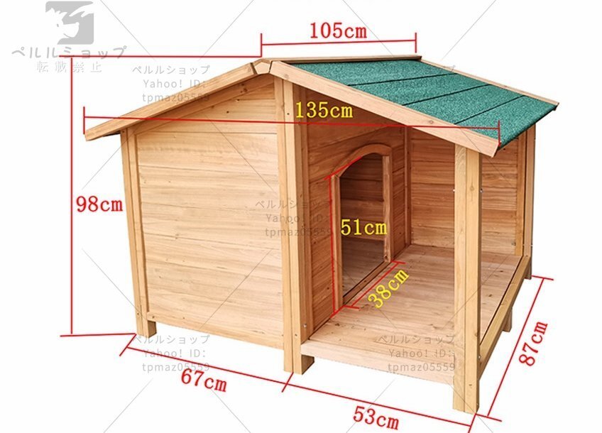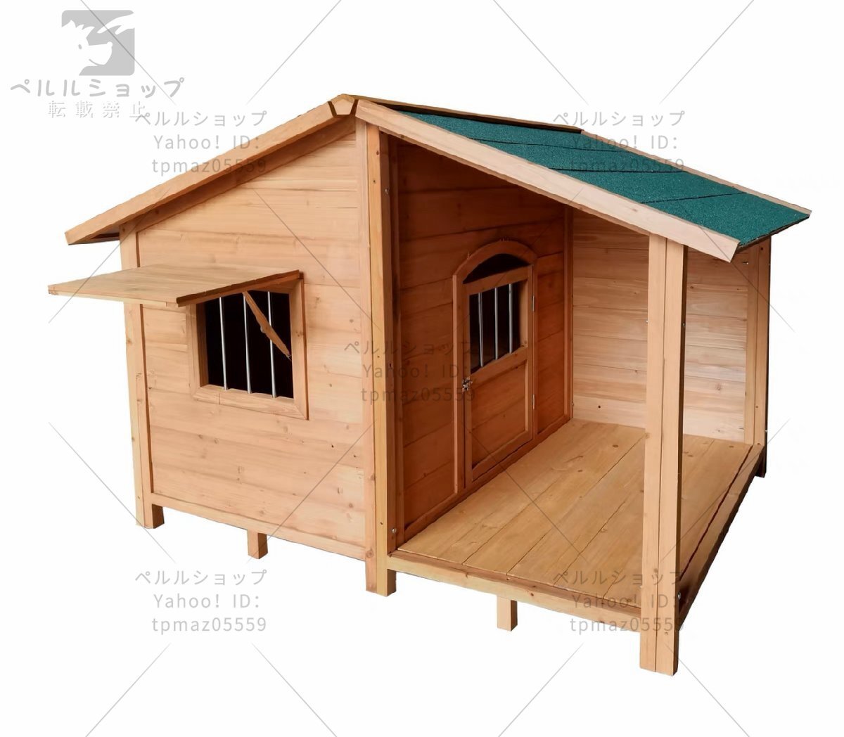 犬小屋 ドッグハウス 木製 中型犬用 犬 ログハウス 庭 外飼い ドッグパーク ロッジ犬舎 ドアと窓付き 通気性 105*135*98cm