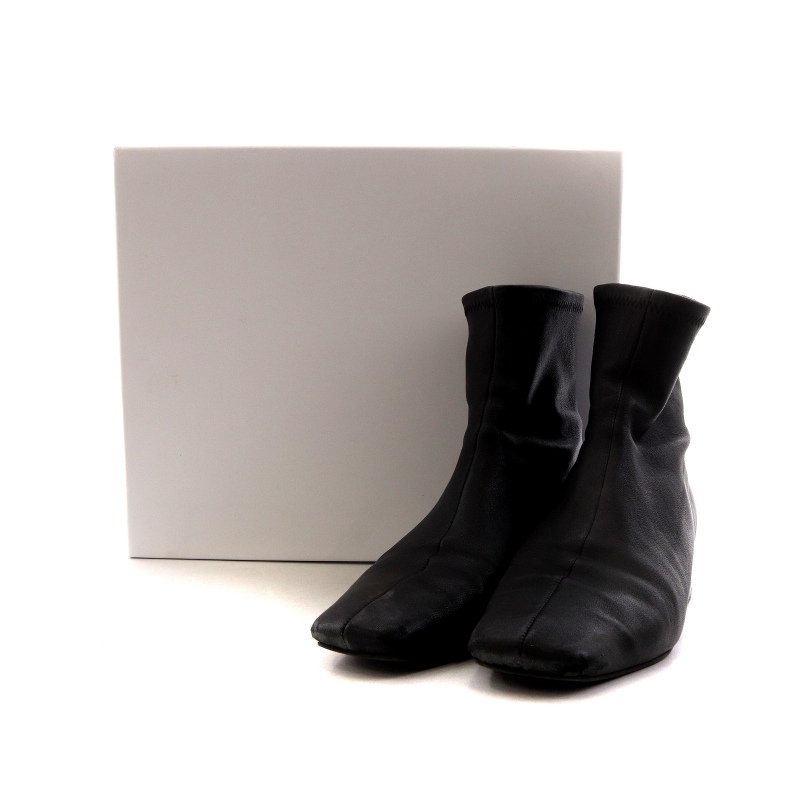 ルタロングリーズ ショートブーツ スクエアトゥ レザー M 24cm 黒 ブラック /AK14 ■SH レディース