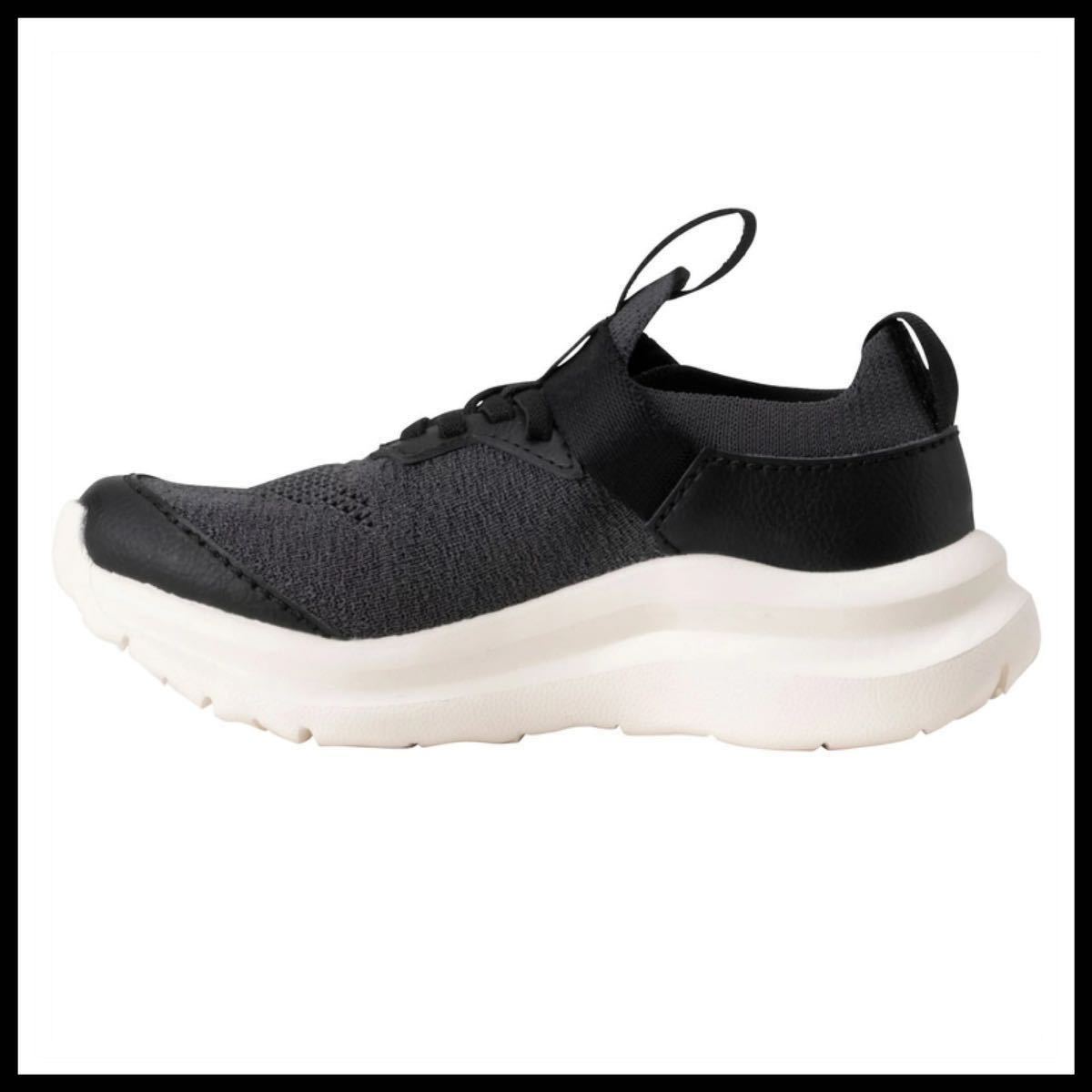 100%リサイクルワンピースニットを使用した、キッズ用のランニングシューズです。やわらかな足あたりトフィット感を追求したニット素材を採用し、大きく開く履き口と、フィット感の調整が楽に行える面ファスナーで構成。優れた伸縮性のエラスティックバンドシューレースが走り二しっかりと追従するフィット性を実現しています。ミッドソールには、クッション性が高い軽量なEVAラバーを配し、アウトソールと一体化。推進力が得やすいロッカー構造で仕上げています。日常の機能的なカジュアルシューズとしてはもちろん、運動会などのランニングシューズとしても活用出来ます。