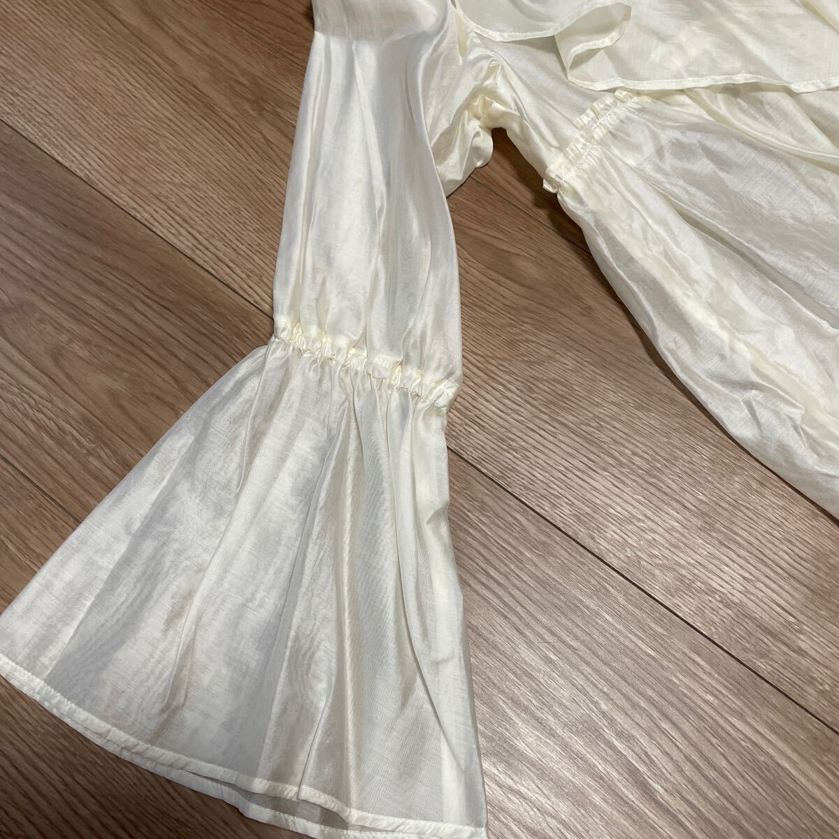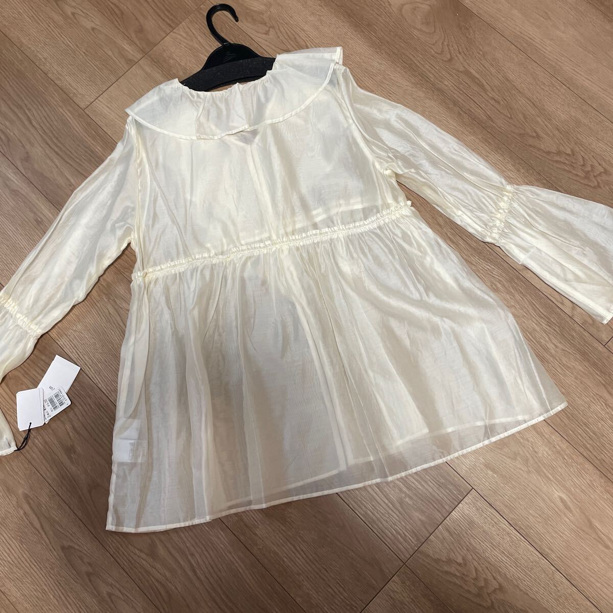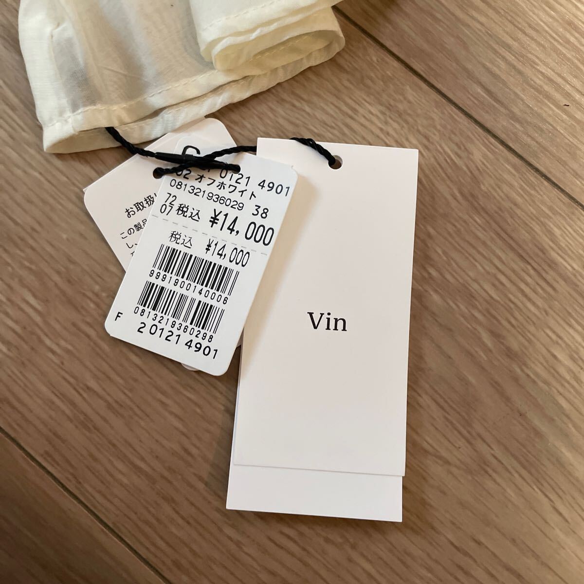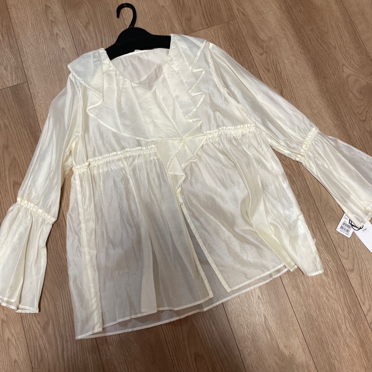 新品タグ付きのVinのラッフルカラーシアーブラウスです。