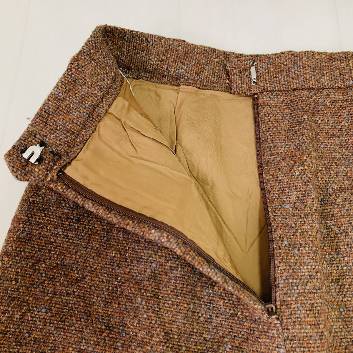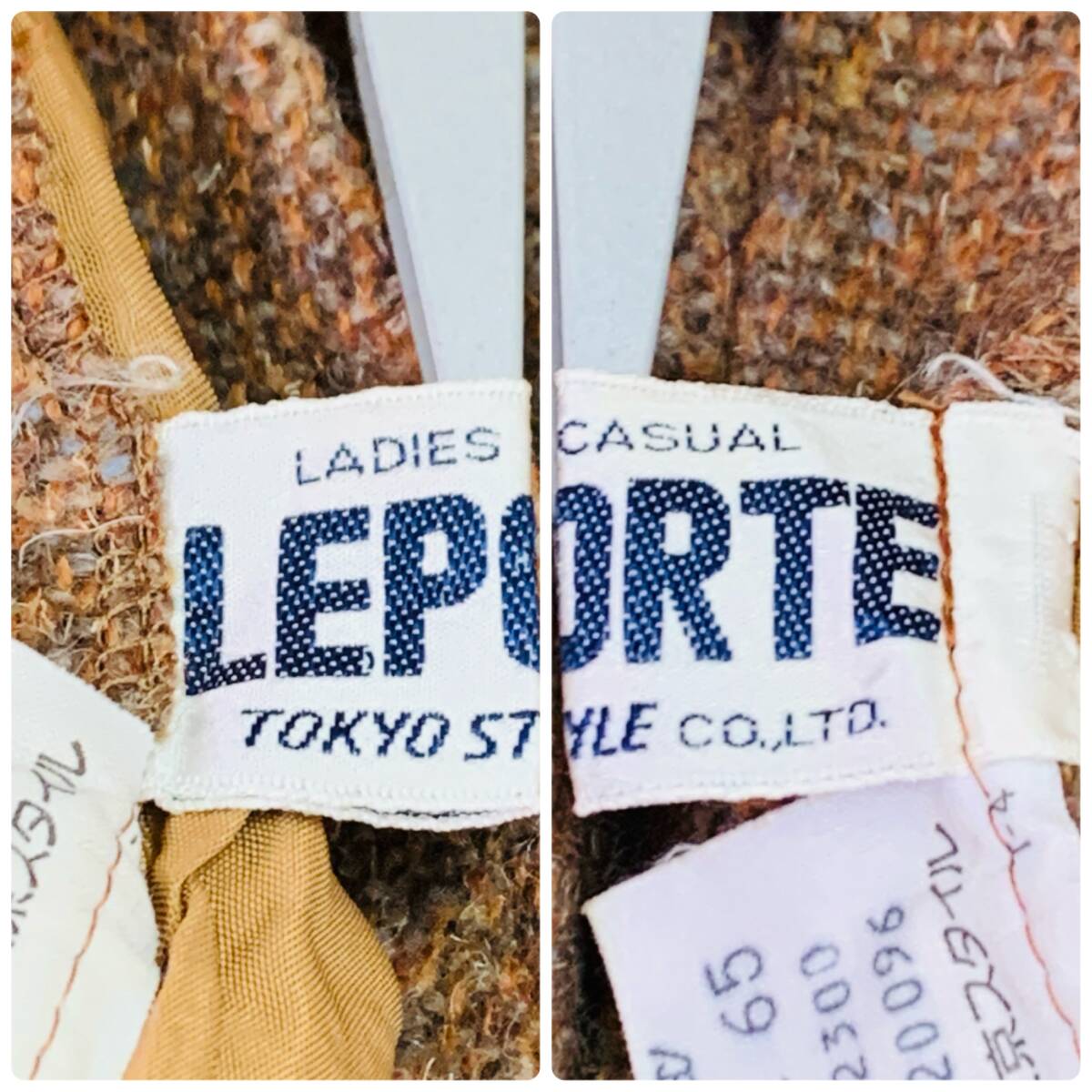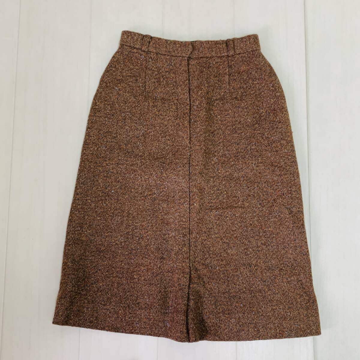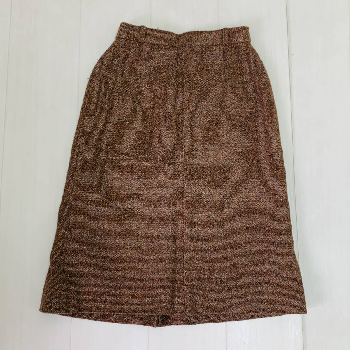 YH2372 LEPORTE レディース ひざ下丈 ウールスカート ブラウン 茶色 毛混 裏地あり 7L65サイズ スウェード調 お洒落 万能 USED 古着