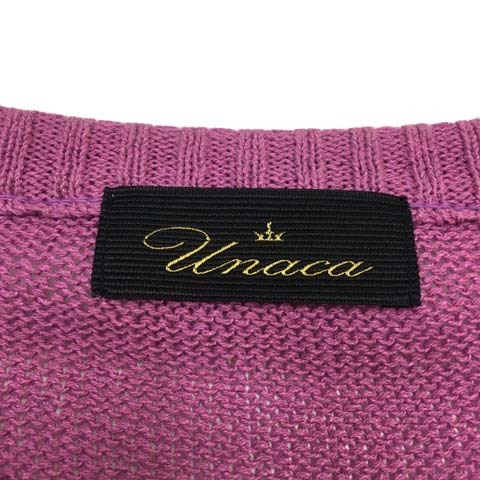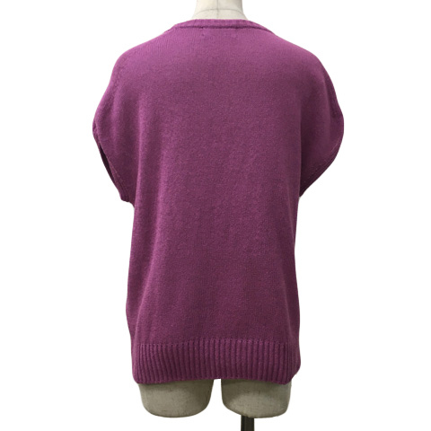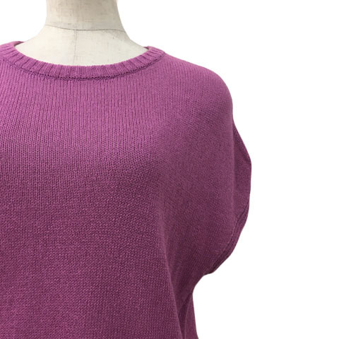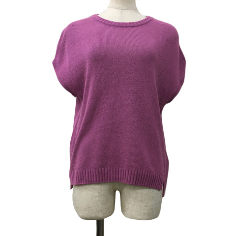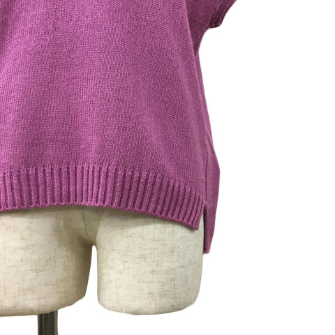 アナカ Unaca セーター ニット プルオーバー ラウンドネック 無地 スリット 半袖 38 紫 ラベンダー パープル レディース