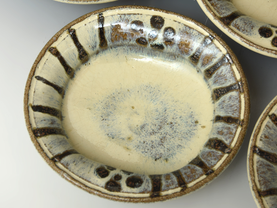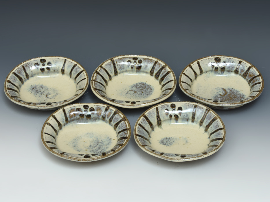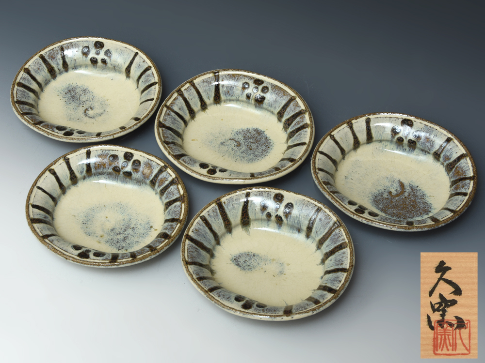久窯 鶴田純久 (造) 斑唐津 向付 5客揃 共箱 しおり 会席 懐石道具 銘々皿 小皿 和食器 茶道具 陶磁器 |