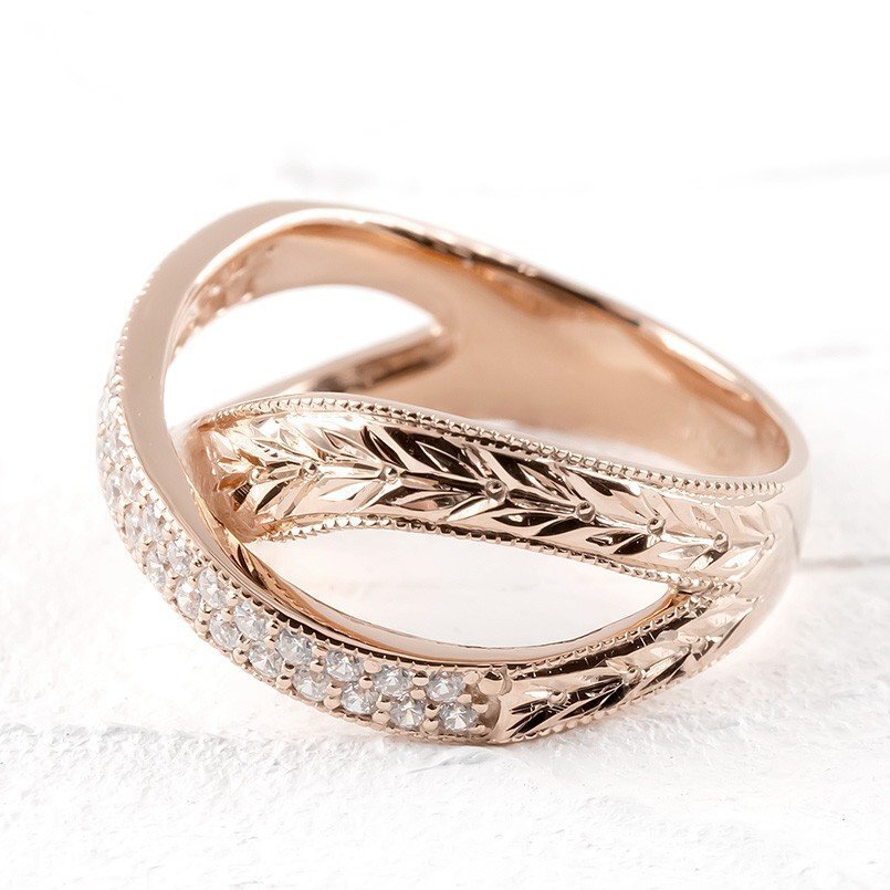 商品コード 200702101dg 発送は3週間ほどですクロスのラインにダイヤモンドと月桂樹の彫りを入れたゴージャスなリング立体的でインパクトのあるボリューミーなデザイン頑張っている自分へのご褒美や、大切な人へのプレゼントに材質 ピンクゴールドk18(品質を保証するk18の刻印)宝石名 天然ダイヤモンド 35石トータル 0.35ct大きさ リング最大幅 約 10ミリサイズ合わせは5-16号までサービスです。それ以上のサイズは別途お値段がプラスされます。0.5号刻みも対応しておりますので、ご希望の場合はご要望欄にご記載ください。ひとつひとつ手作り加工 自分へのご褒美 誕生日 記念日 人気 ジュエリー リング 指輪 ピンクゴールドk18 k18 18k 18金 レディース ピンキーリング ダイヤモンド ダイヤ 月桂樹 ブライダルリング エンゲージリング 婚約指輪 ギフト対応 マリッジ 結婚 指輪 婚約 ウェディング プロポーズ プレゼント 結婚祝い ジェンダーレス ハンドメイドジュエリー ギフト プレゼント 贈り物 フリースタイル ニッケルフリー ユニセックス LGBTQ 男女兼用 ジェンダーフルイド バディジュエリー小さいサイズ 大きいサイズ 対応 太めでおしゃれ