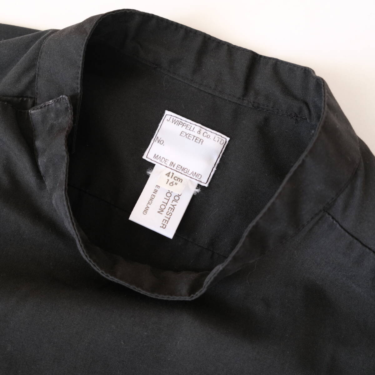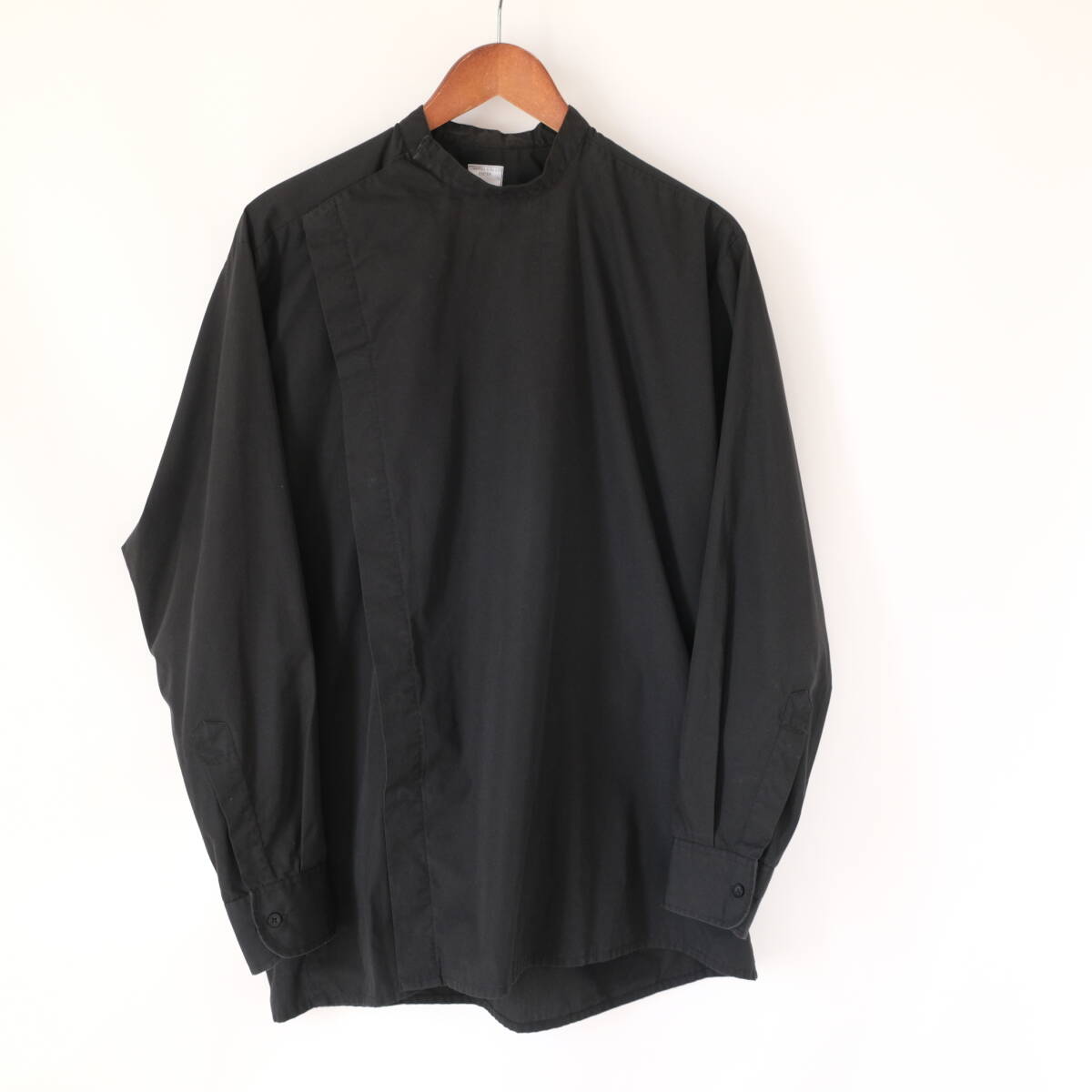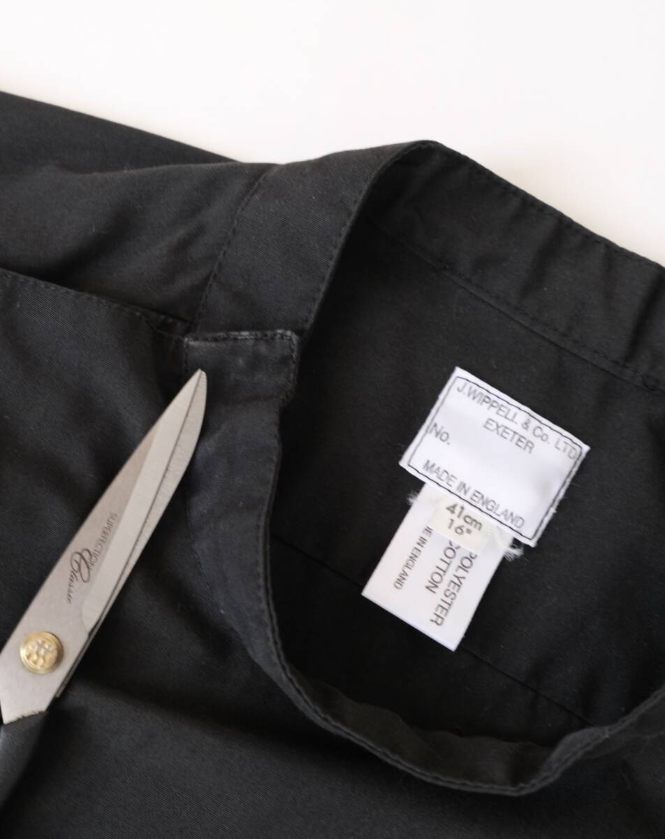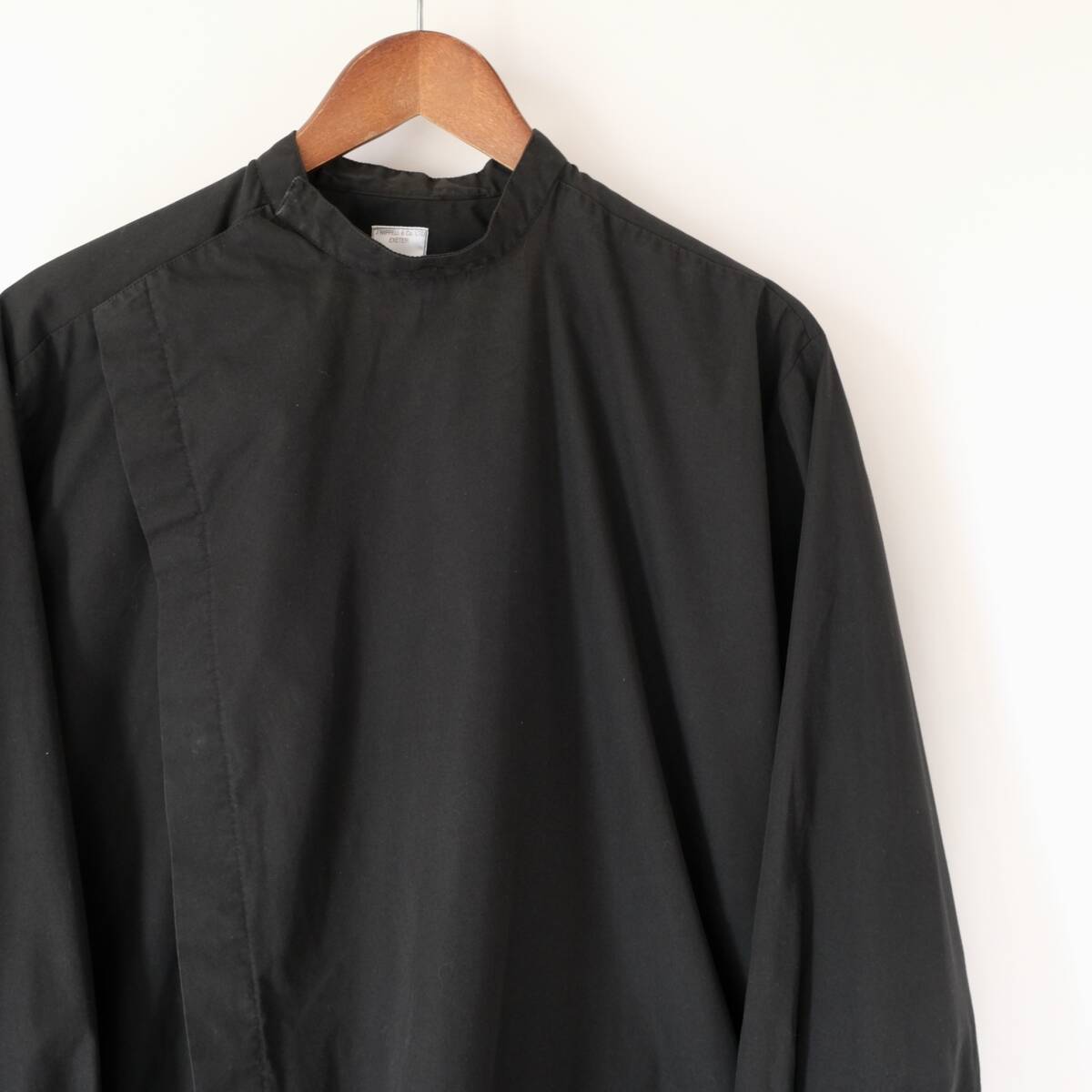 【 イギリス ビンテージ 】モックネック ブラック 長袖 シャツ / 黒 / 16 / ヨーロッパ 英国 フランス ワーク 古着