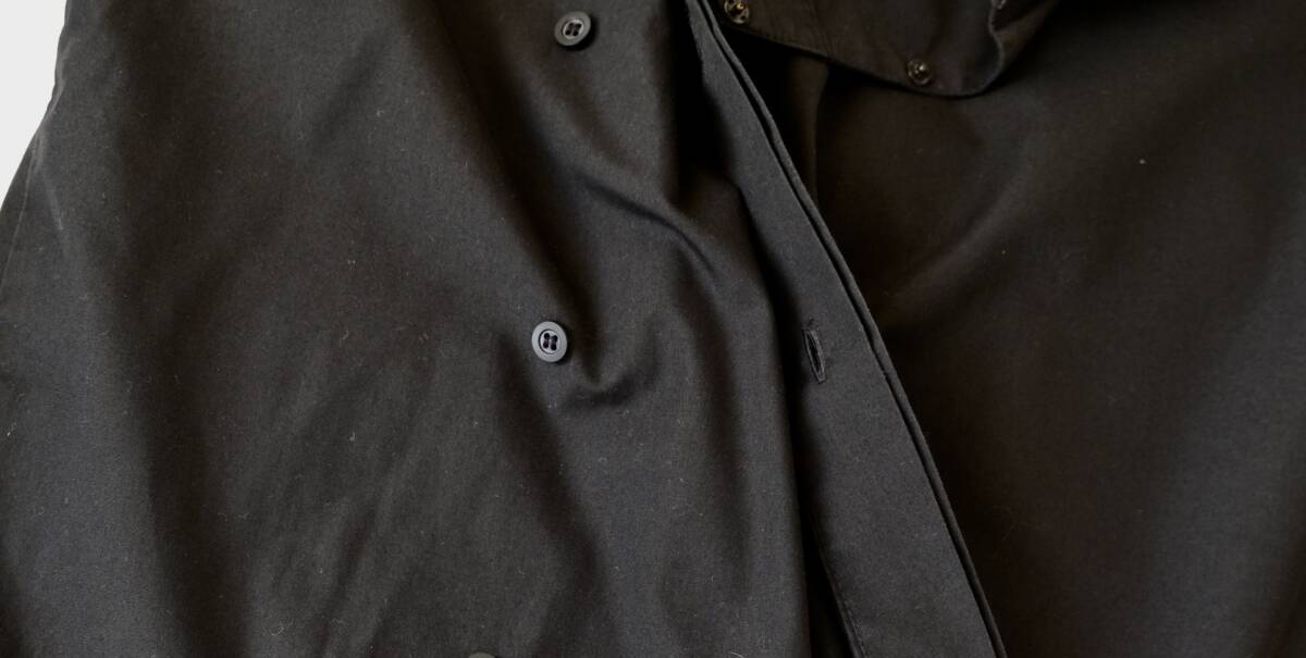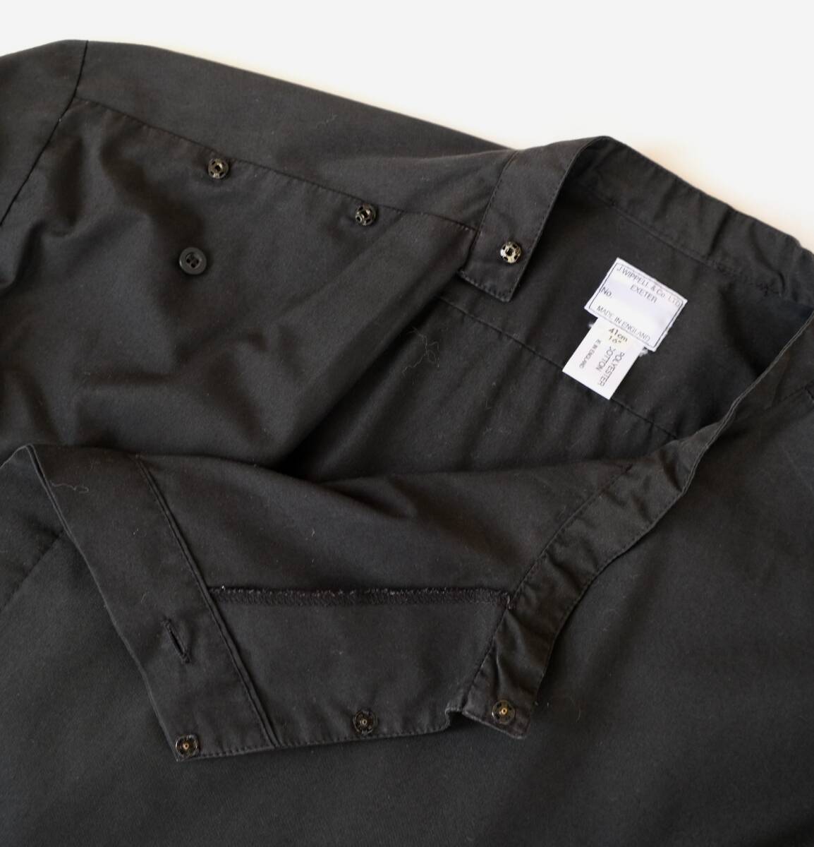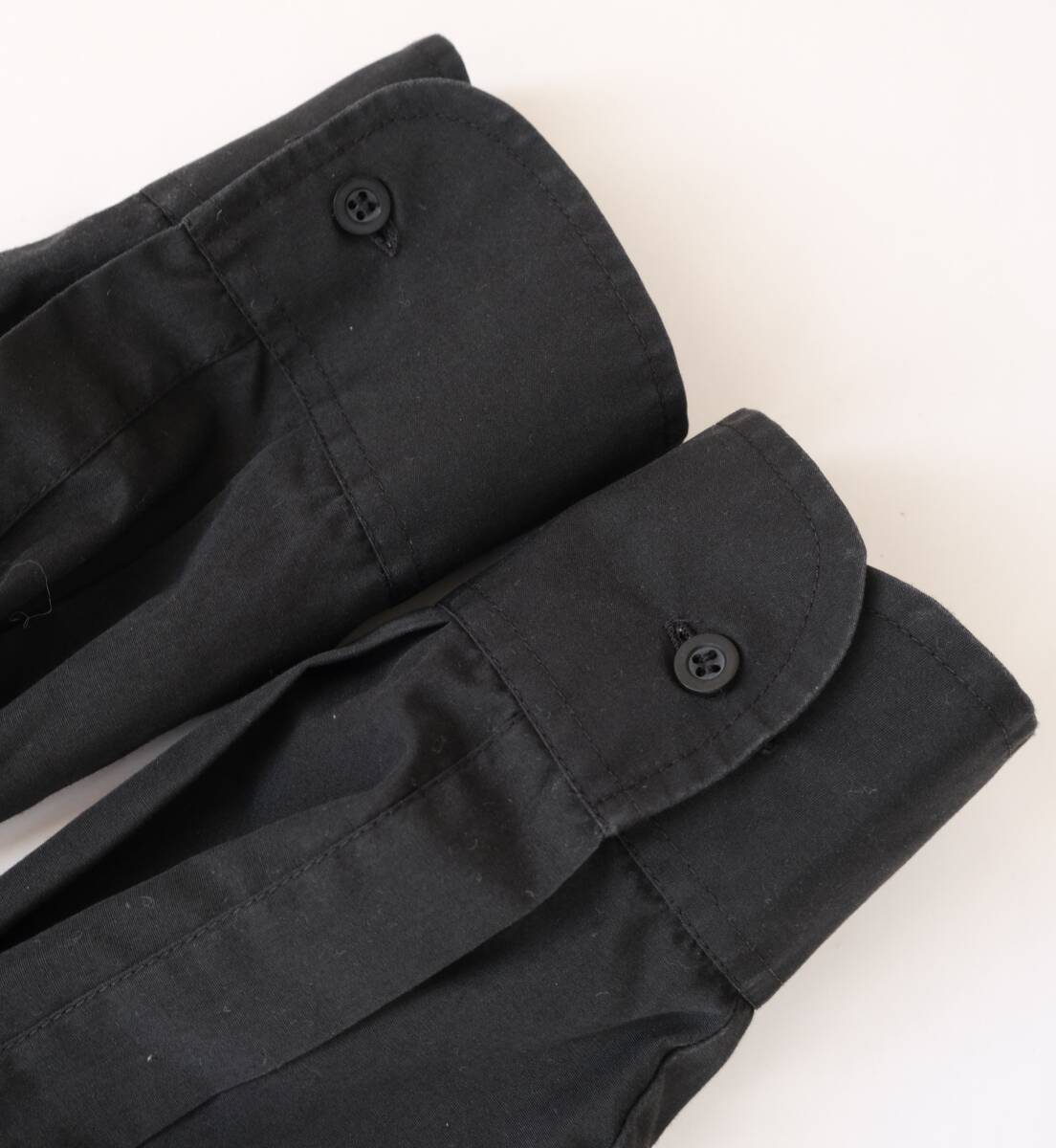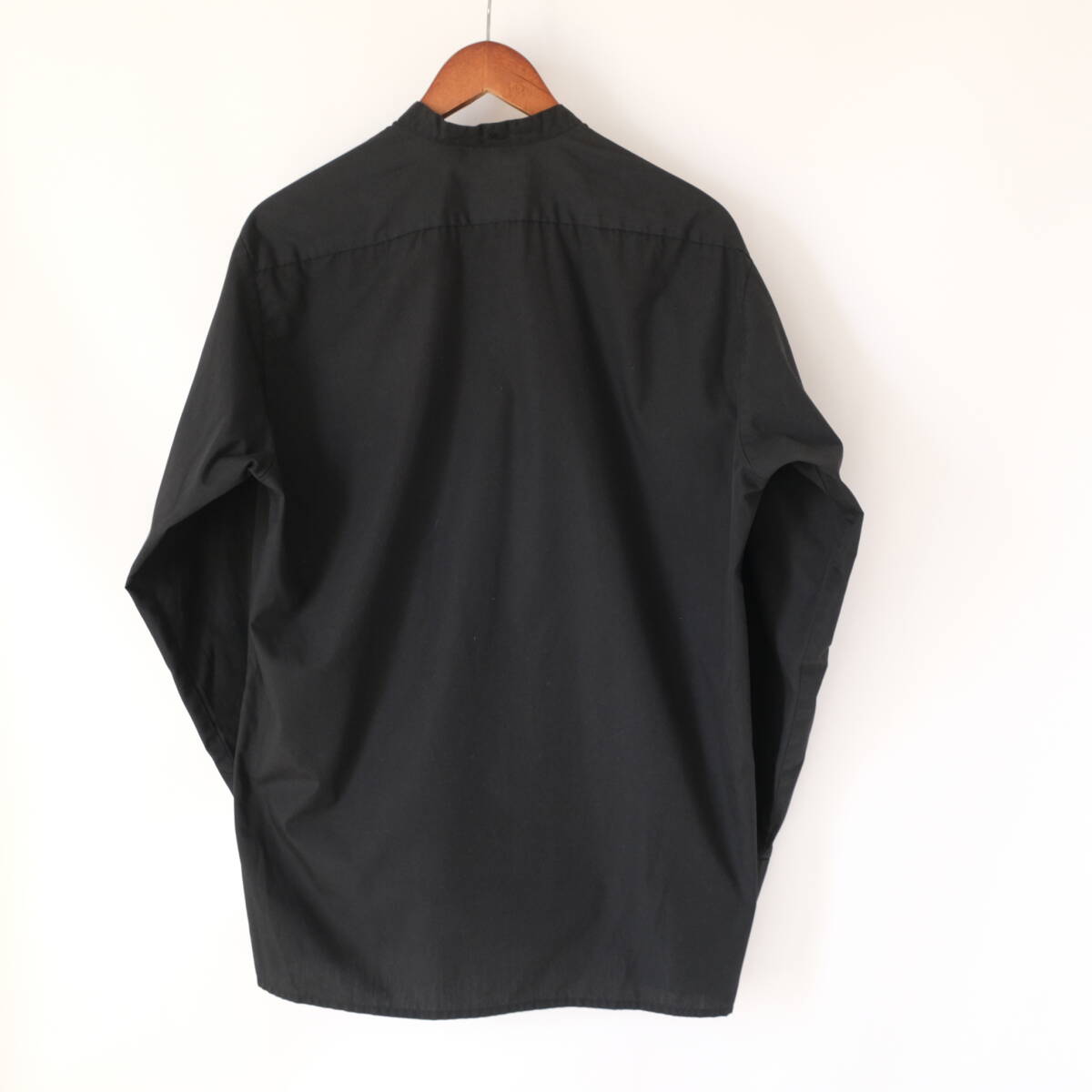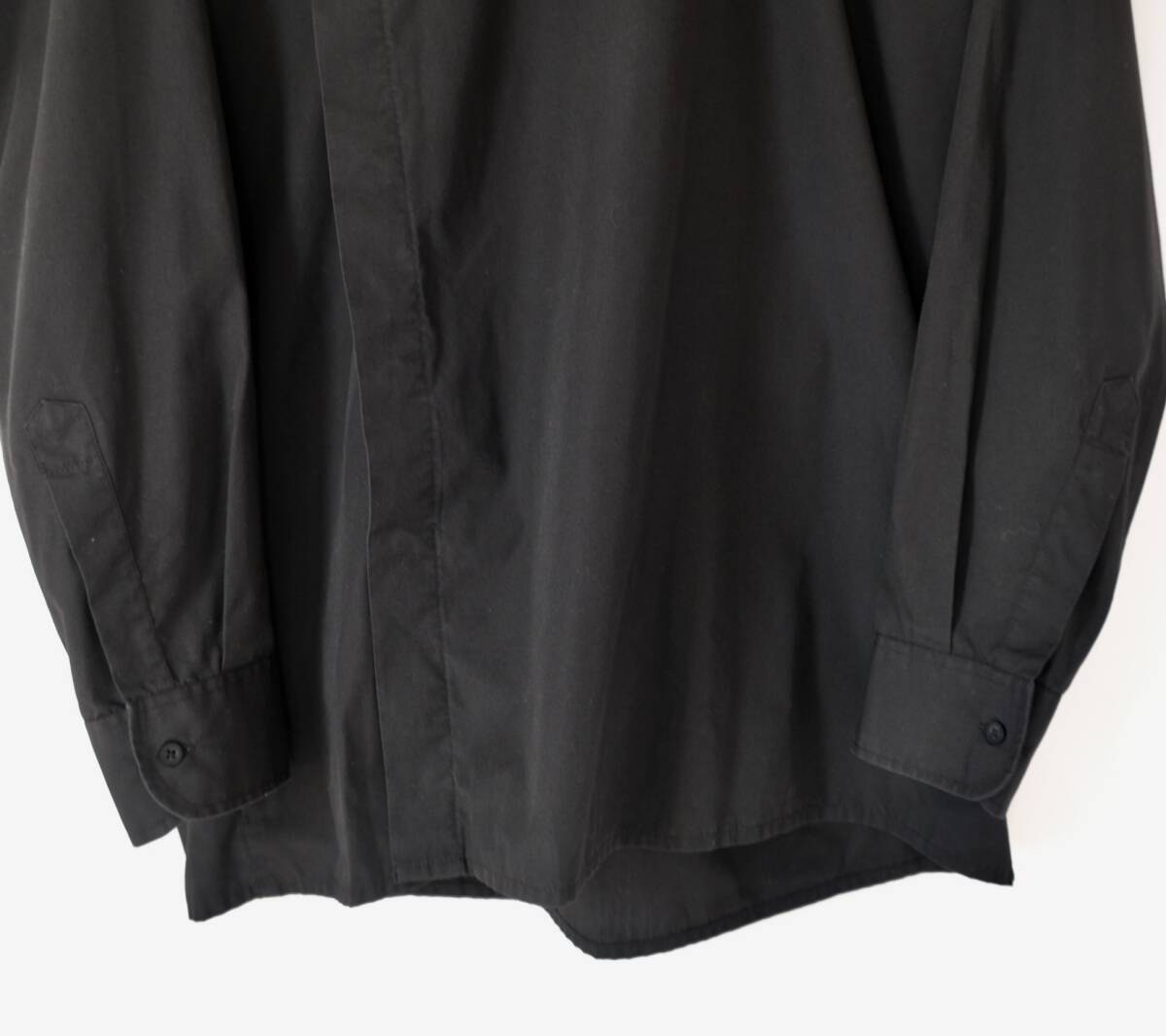 【 イギリス ビンテージ 】モックネック ブラック 長袖 シャツ / 黒 / 16 / ヨーロッパ 英国 フランス ワーク 古着