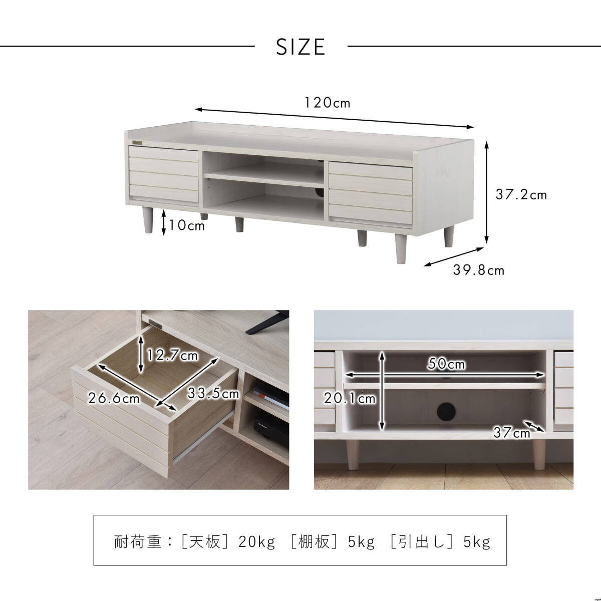 【2カ所のコード穴と脚部のネジ仕様で安定感と使い勝手が良い】テレビ台 ローボード 幅120cm 43型対応 木目調仕上げ 省スペース