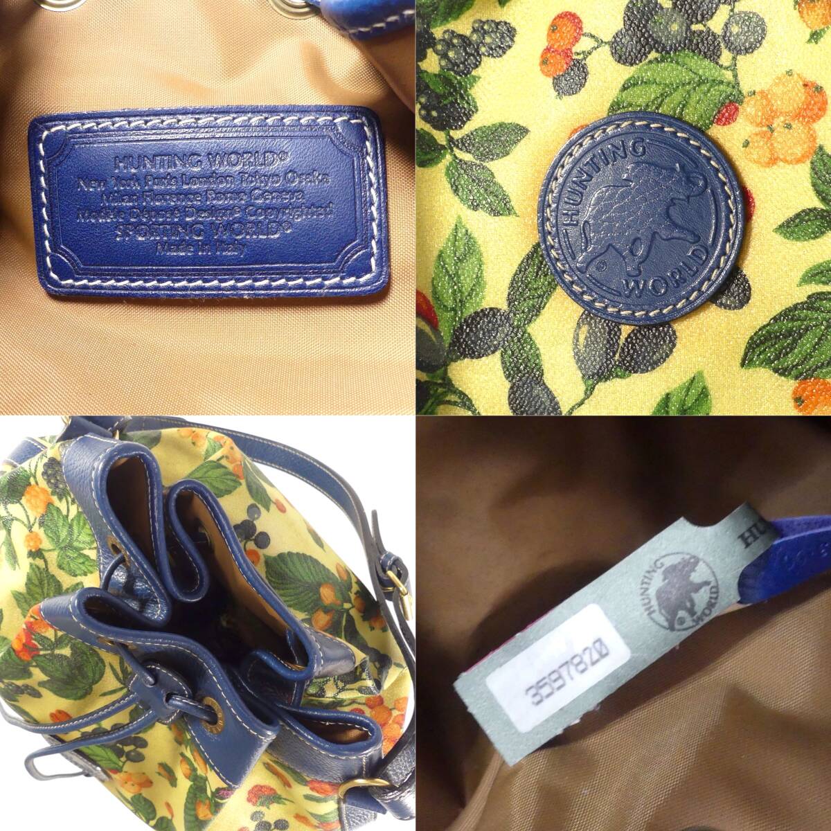 即決★イタリア製 HUNTING WORLD★レザーコンビショルダーバッグ ハンティングワールド レディース 花柄 ボンサック 本革 斜め掛け 本皮