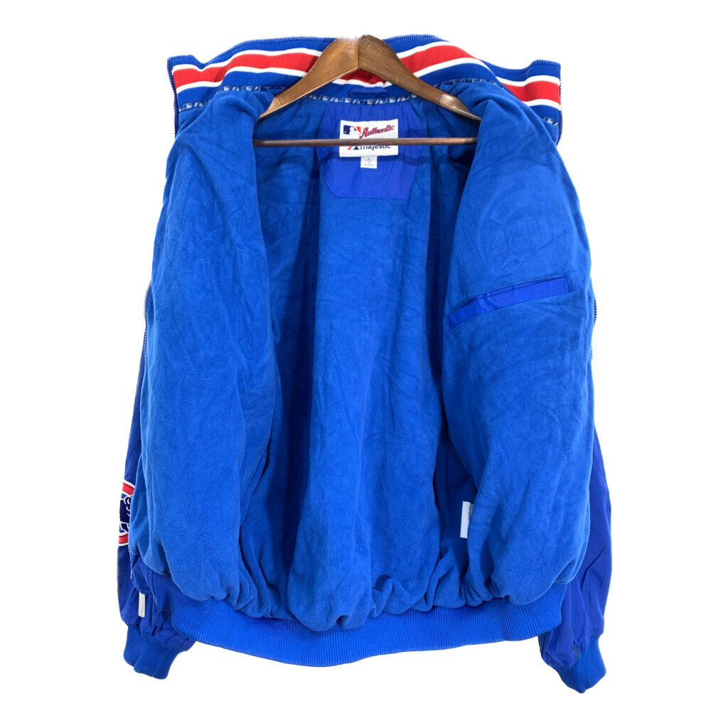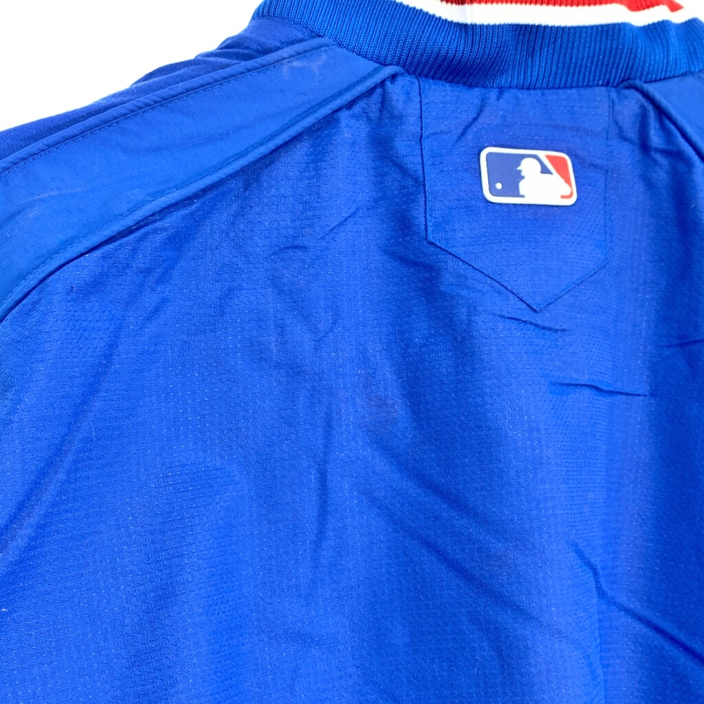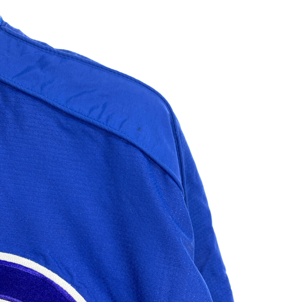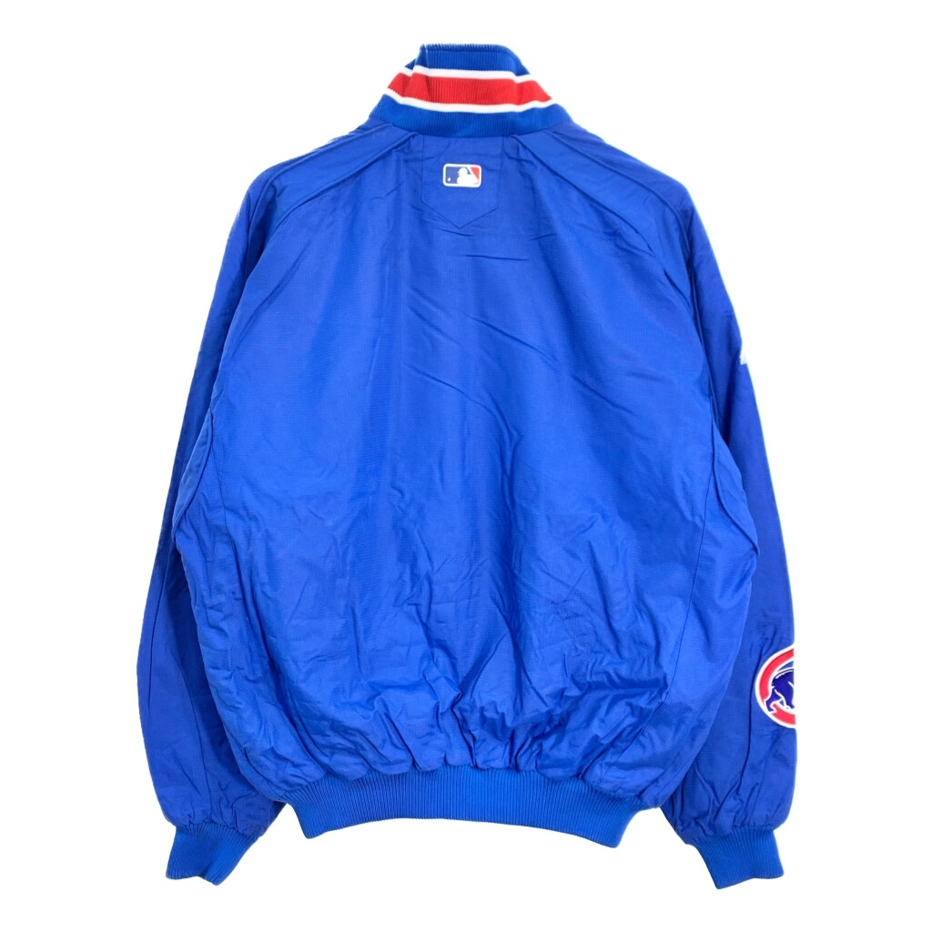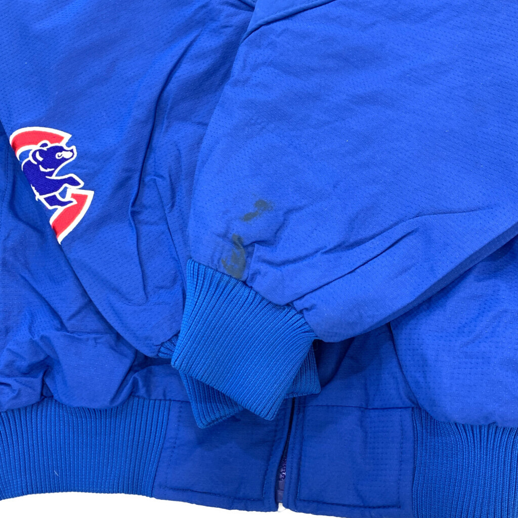 [商品管理番号] T1970 [ブランド] Majestic/マジェスティック [サイズ] L [実寸サイズ] 着丈:約66cm 身幅:約66cm 裄丈:約93cm 袖下丈:約59cm [主な素材] 表地 : ナイロン 裏地 : 13897 [色] ブルー [仕様] プロチーム MLB シカゴ・カブス [状態] 汚れ:袖、袖先、胸、背中 キズ: ボタンスレ | |||