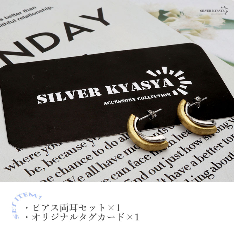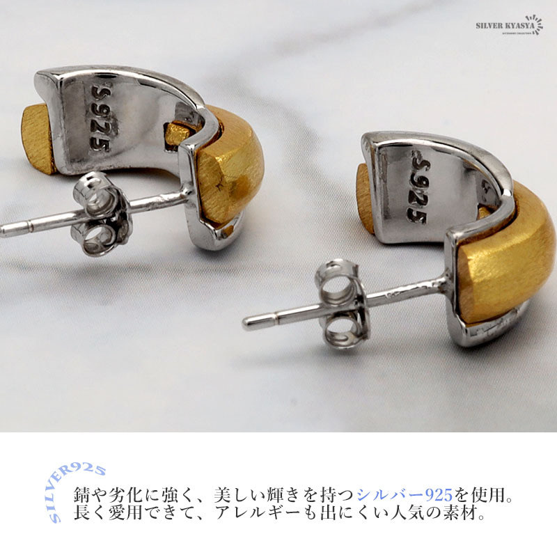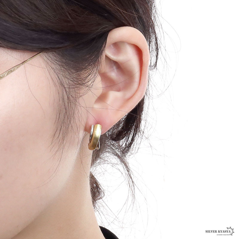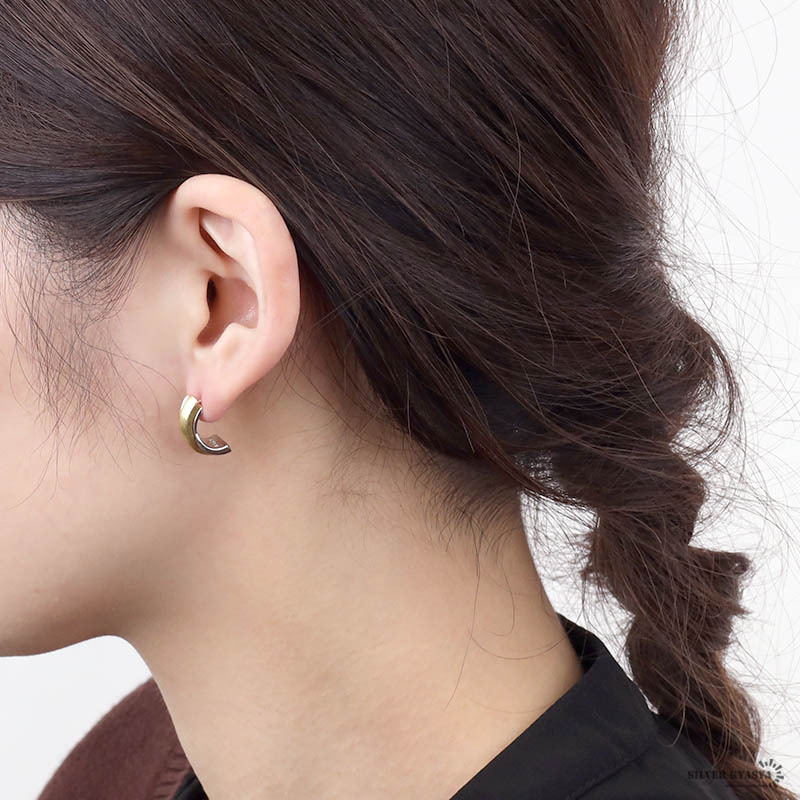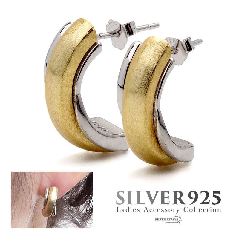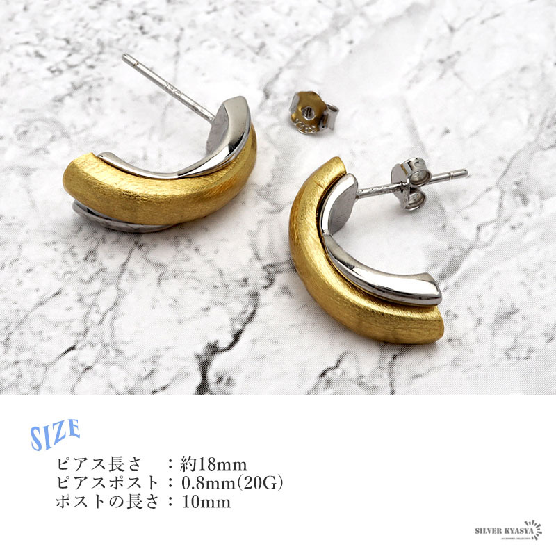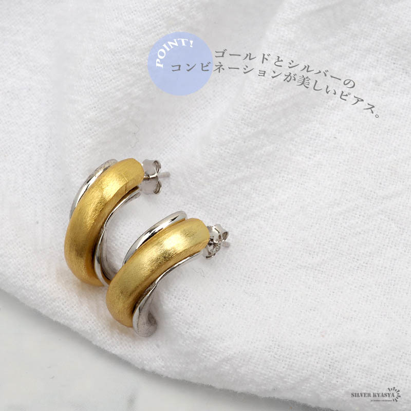 ピアス 金属アレルギー シルバー925 18KGP フープピアス コンビネーション コンビカラー C型 ゴールド 両耳用 2点