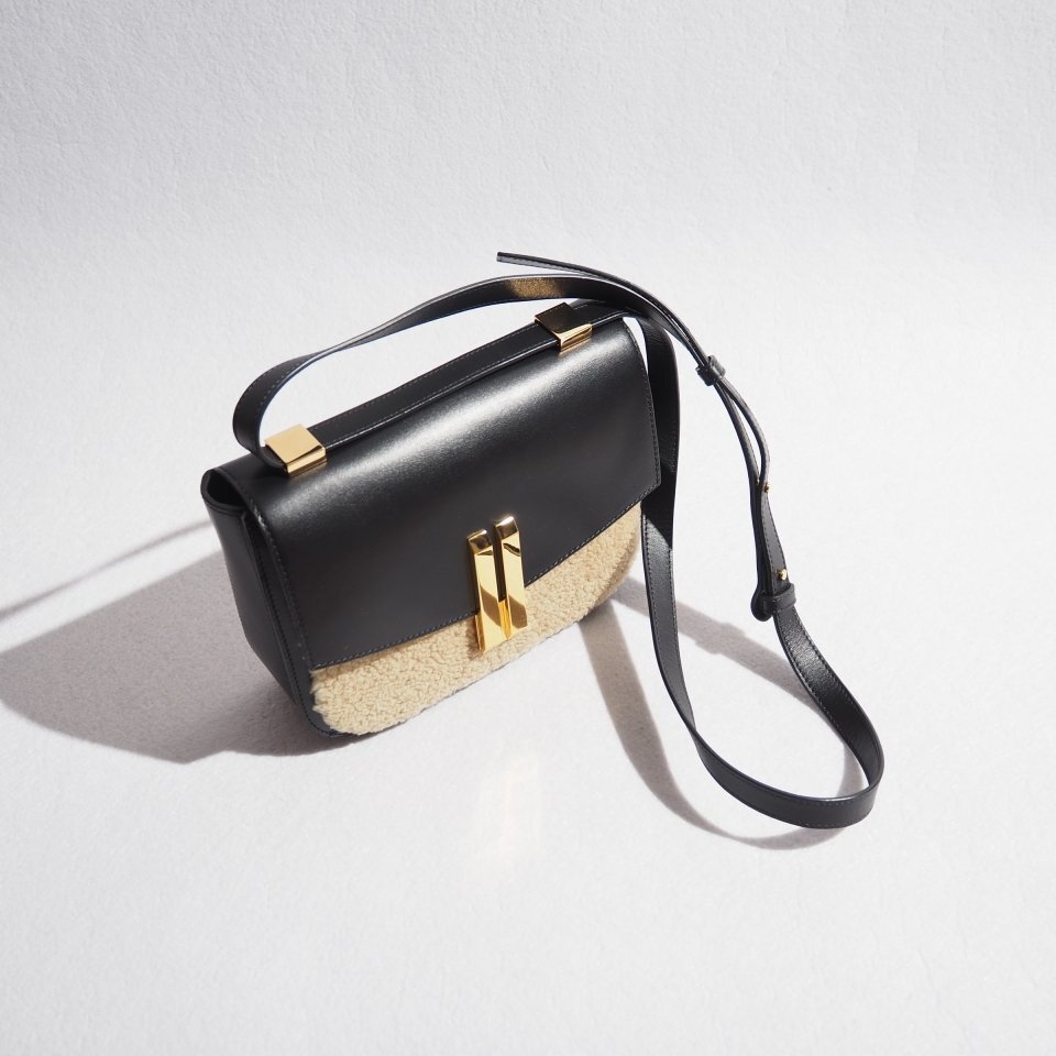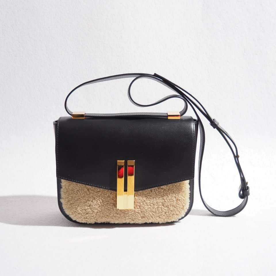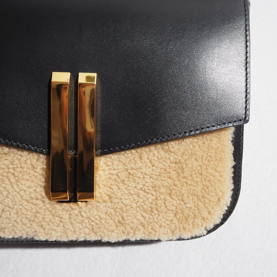 P6467P ▼DEMELLIER デメリエール▼ 24AW VANCOUVER シープスキン ムートン ショルダーバッグ ブラック / ムートン レザーバッグ rb mks