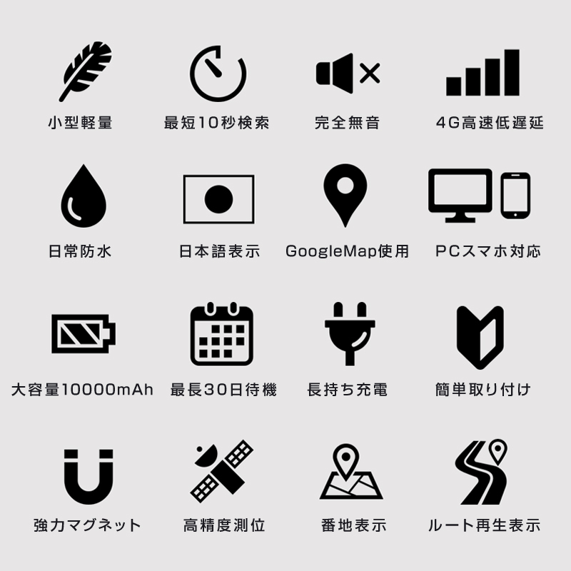 コンパクトで隠しやすい。完全無音、最短10秒間隔で検索可能。