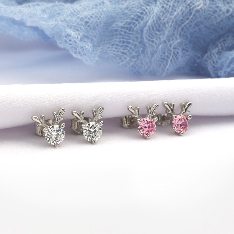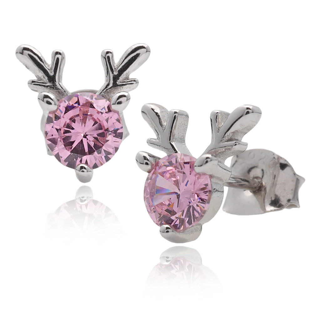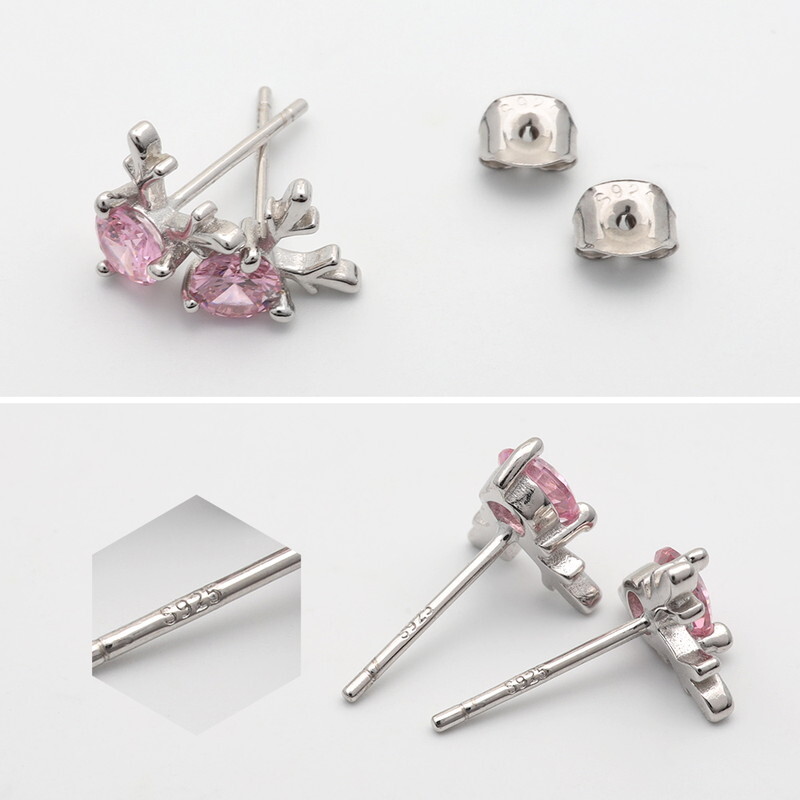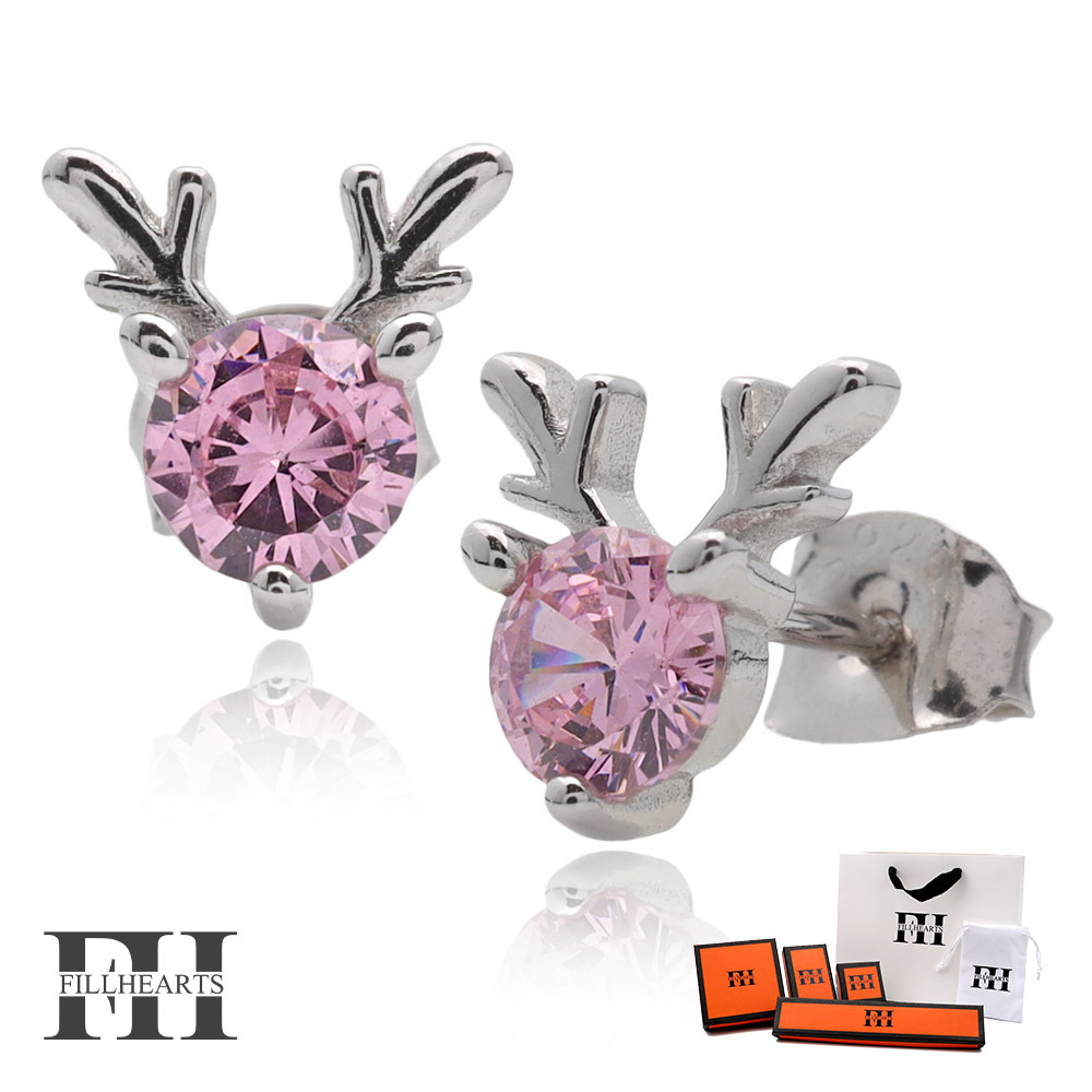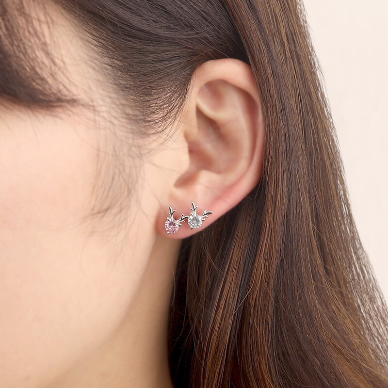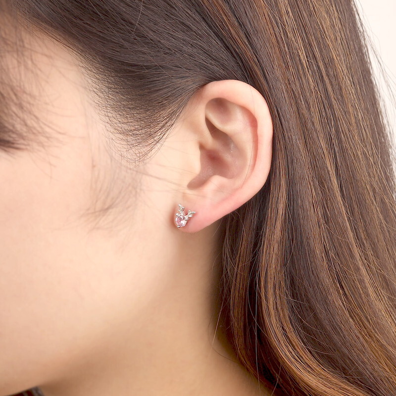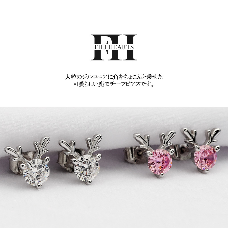 FILL HEARTS ピアス ピンク Deer 鹿 角 トナカイ ジルコニア 金属アレルギー対応 シルバー925