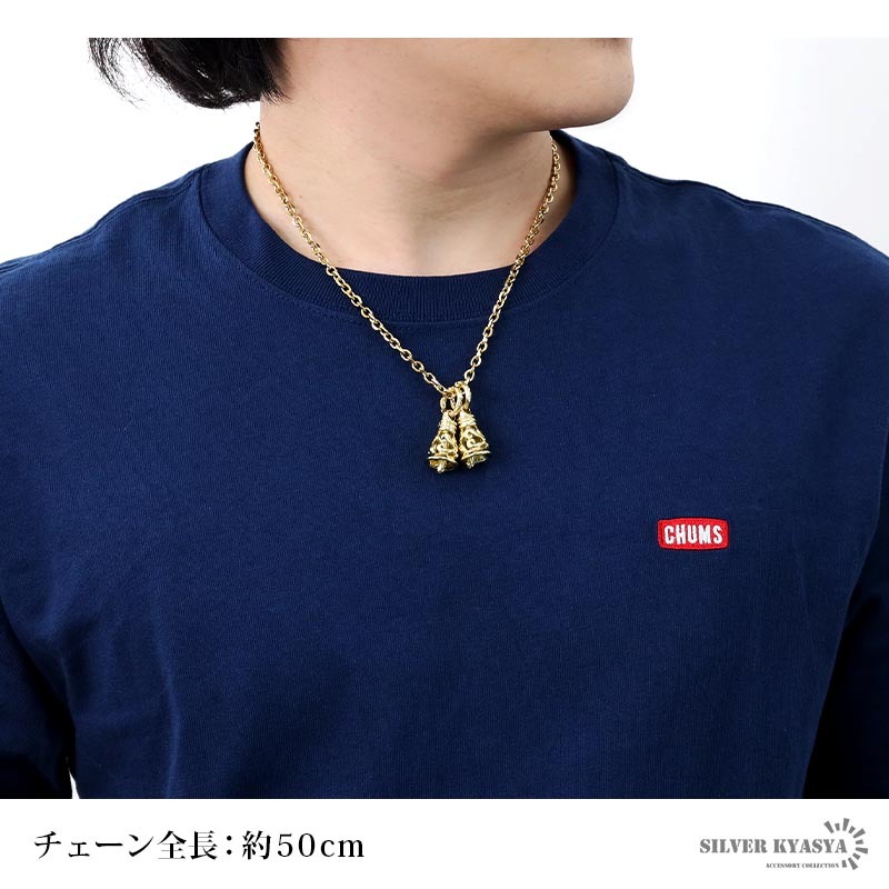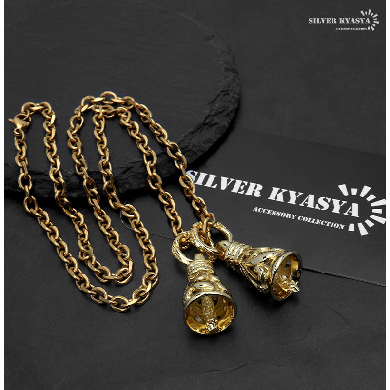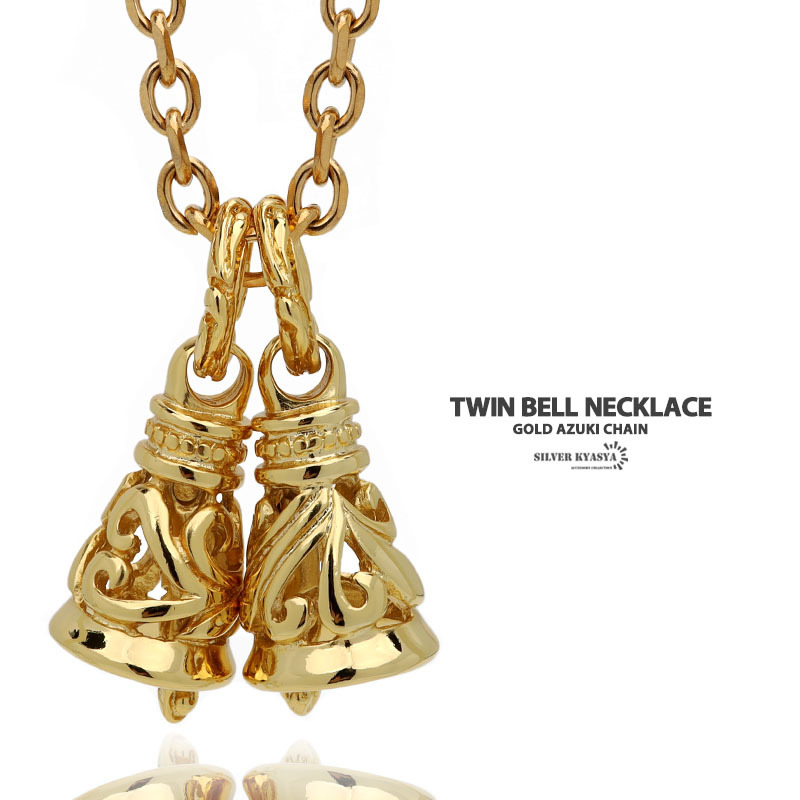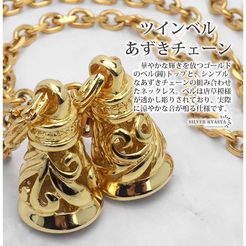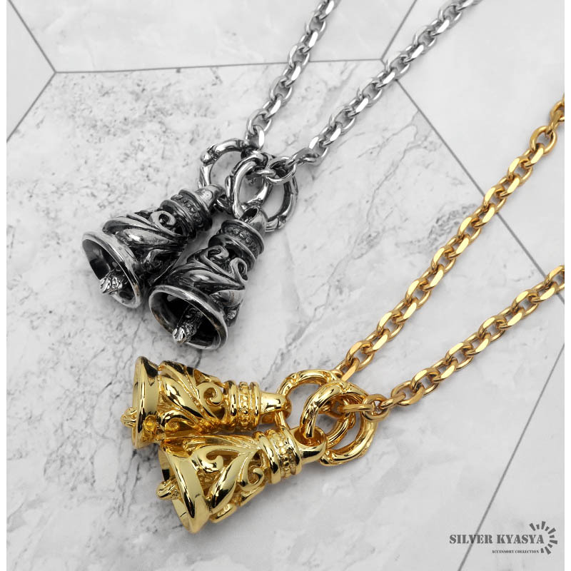 ベルネックレス ステンレス ゴールド 金 18K K18 ツインベル 鐘 唐草 あずきチェーン ペンダント メンズ ごつめ b系