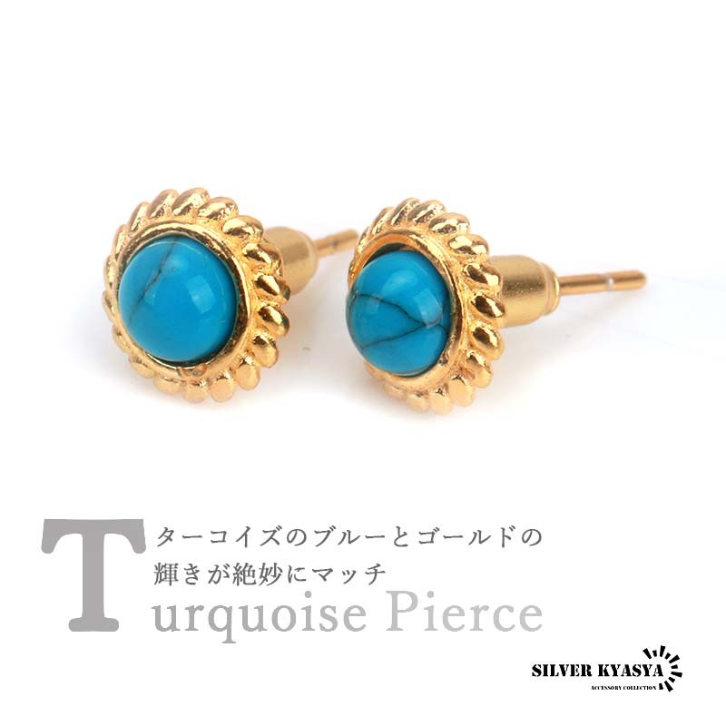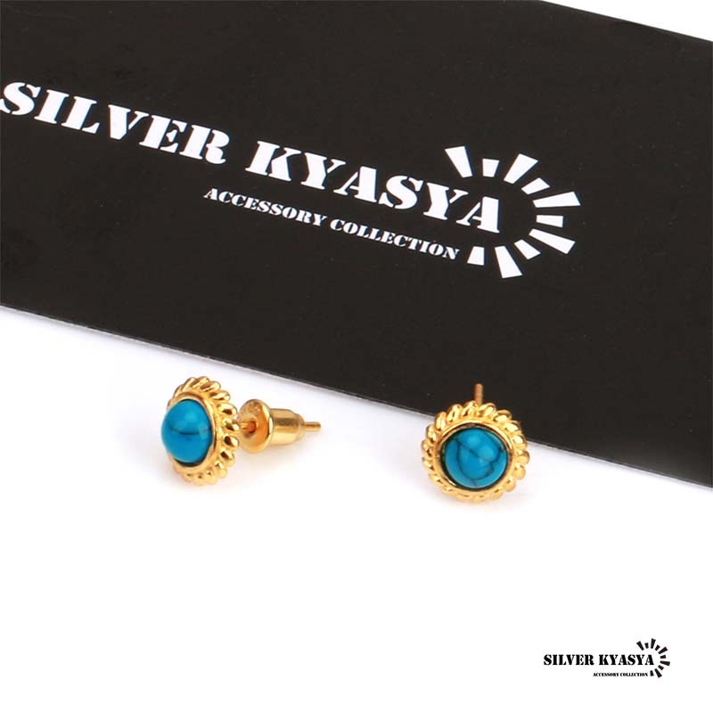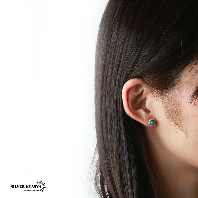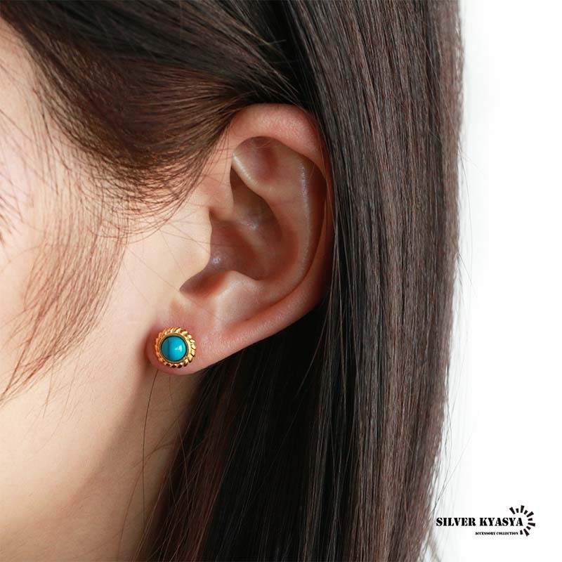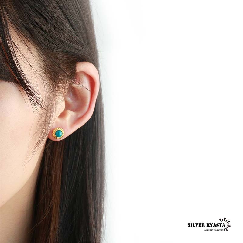 両耳 2点 金縄ターコイズピアス ゴールド 22kgp ターコイズ 一粒ピアス インディアンジュエリー ピアス ネイテイブ
