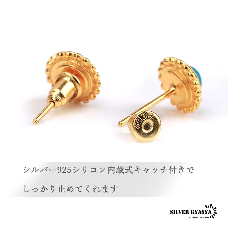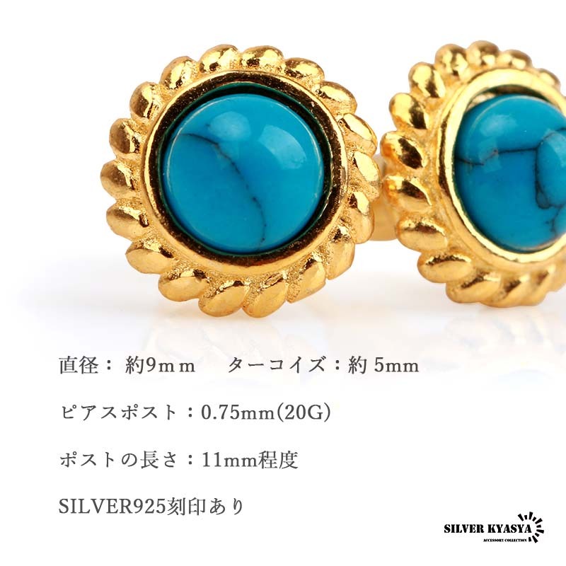 シルバー925、22金コーティングブルーターコイズ(人工石)