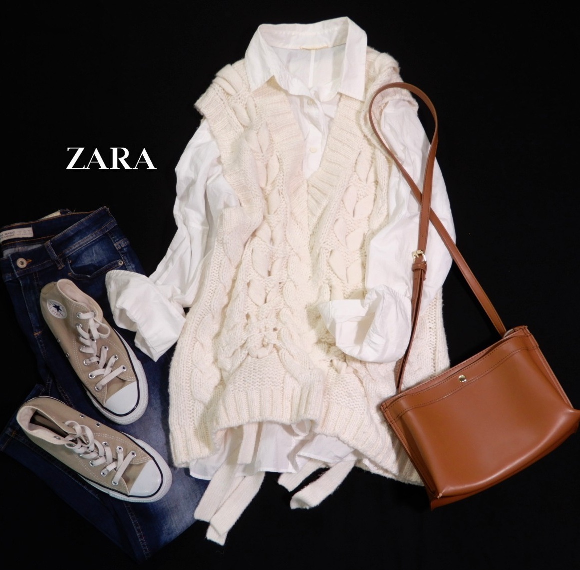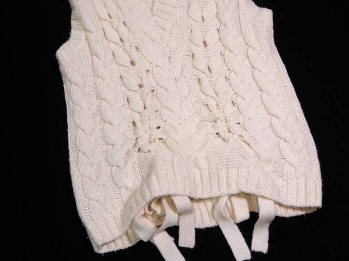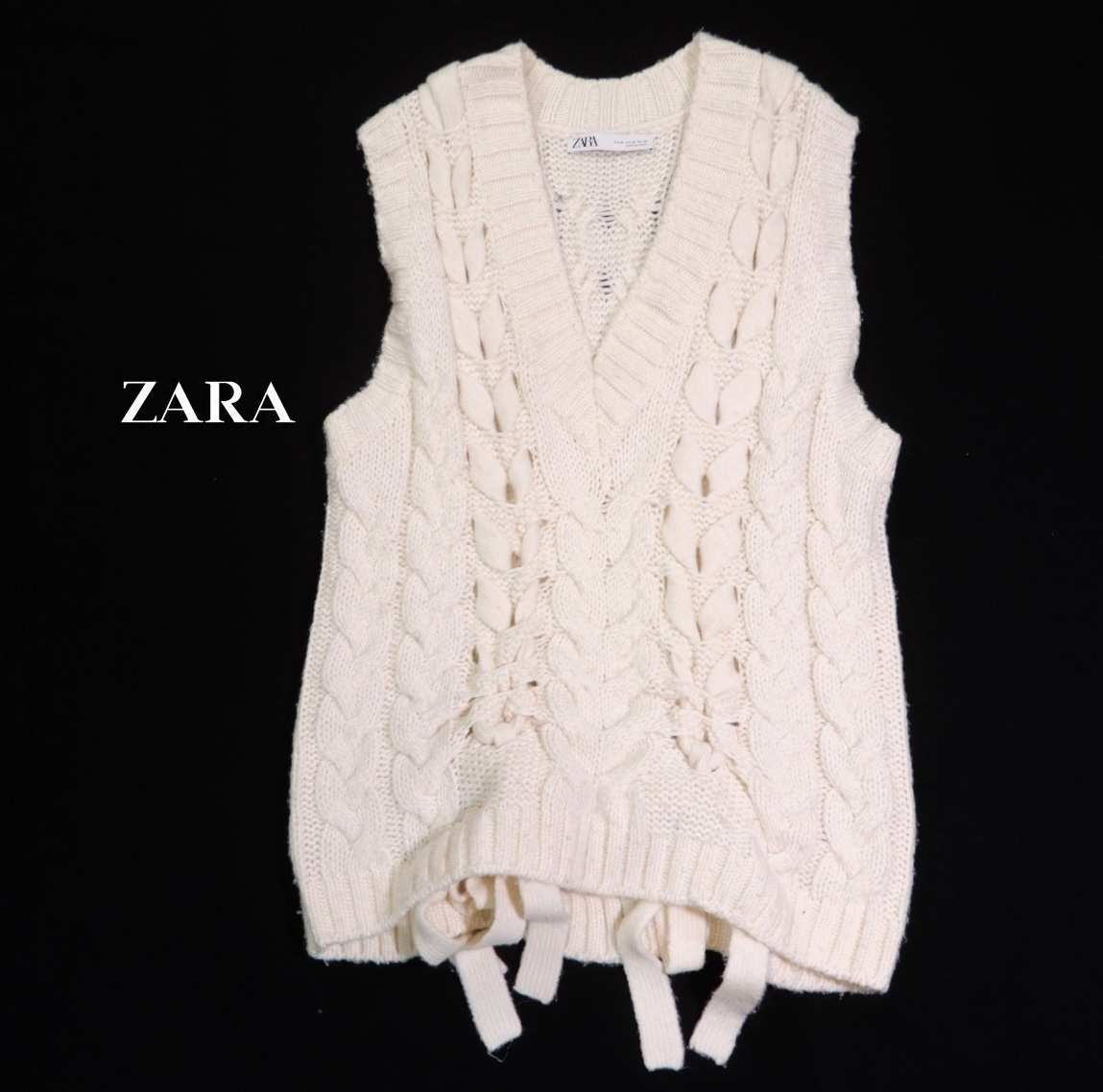 ザラ ZARA 大人可愛い☆ Vネック ケーブル リボン デザイン ニット ベスト M