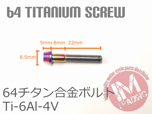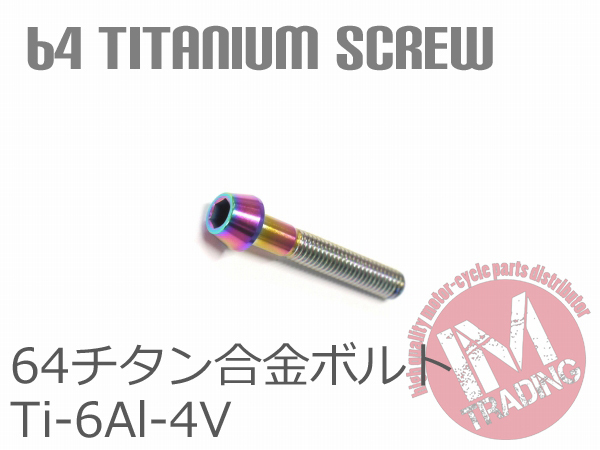 64チタン合金ボルト M5×30mm P0.8 4本セット テーパーキャップ ゆうパケット対応 焼き色有り Ti-6Al-4V☆