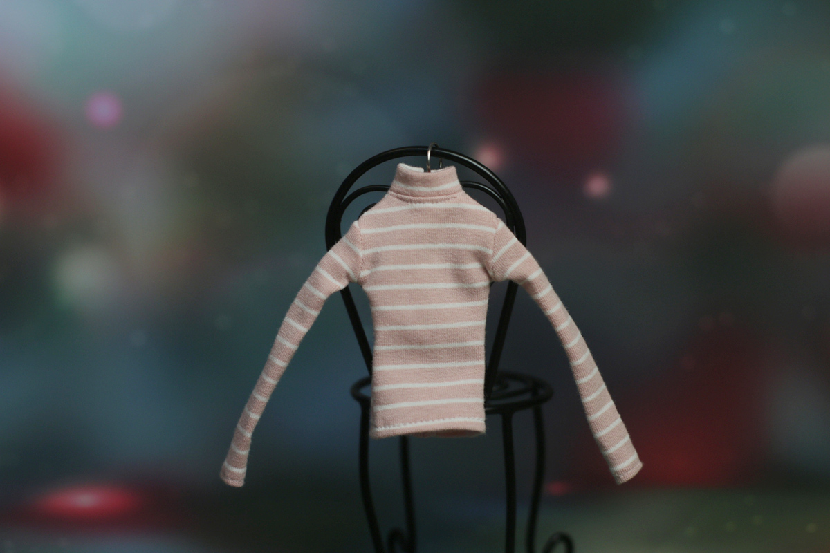 背中マジックテープ留め、細身で、袖は長めに作っています。
