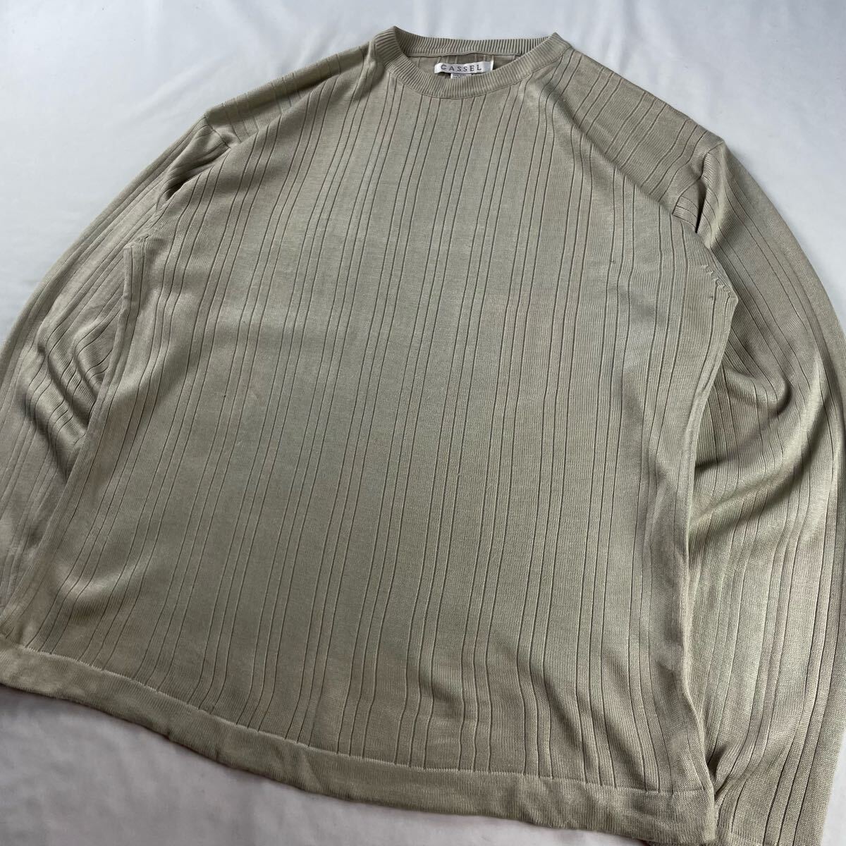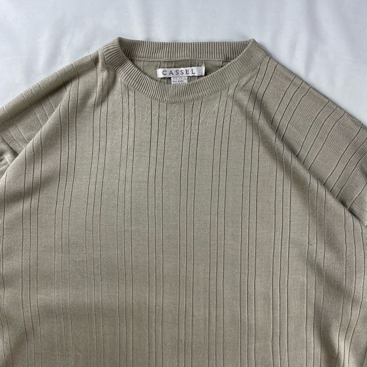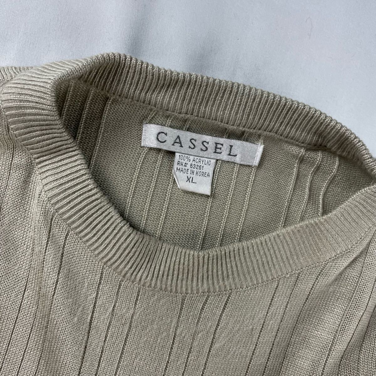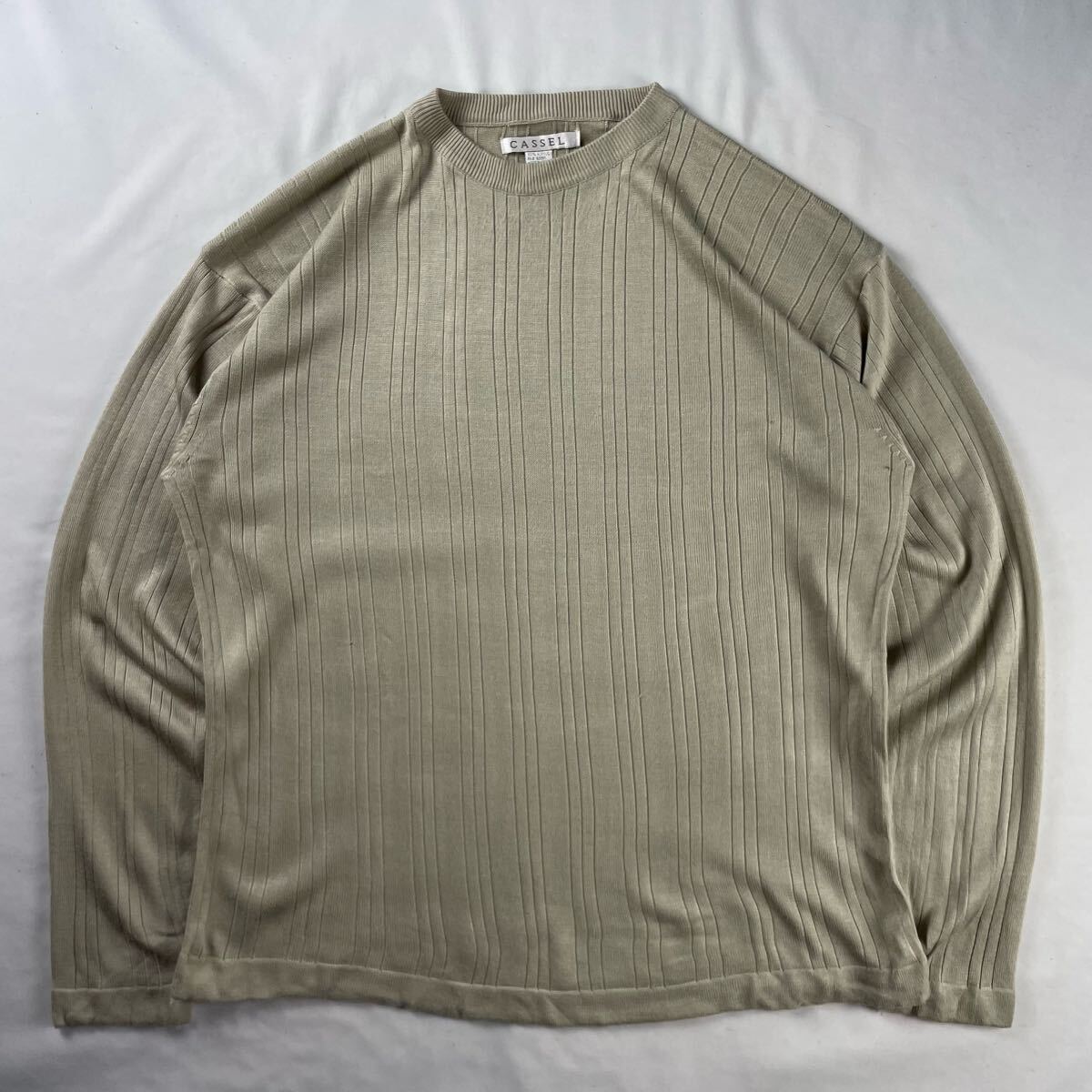 US Vintage 00s? CASSEL アクリル100% くすみカラー 立体 3D リブ編み 単色 プレーン ベージュ サンドカラー デザインニット