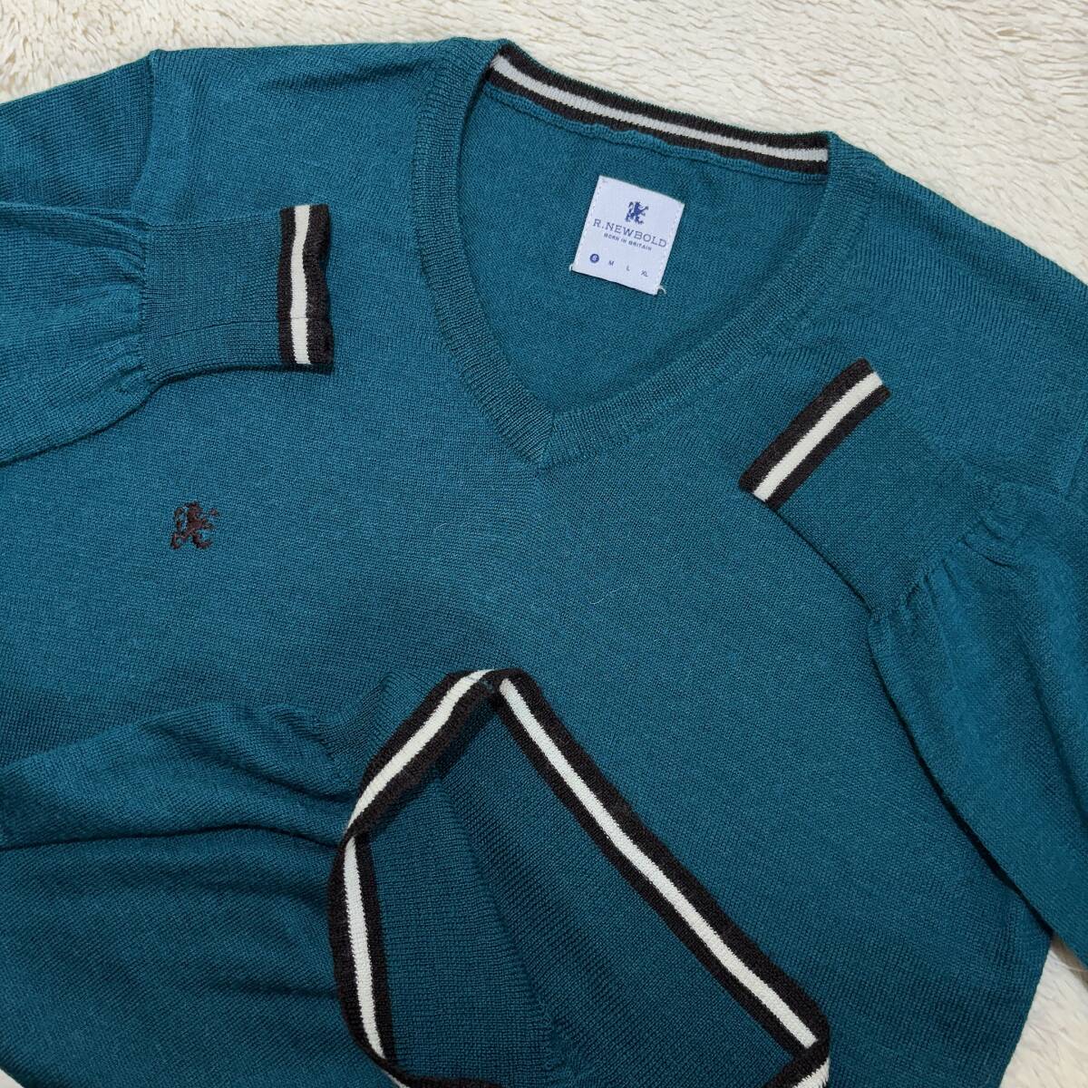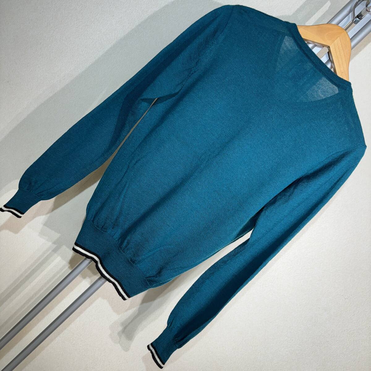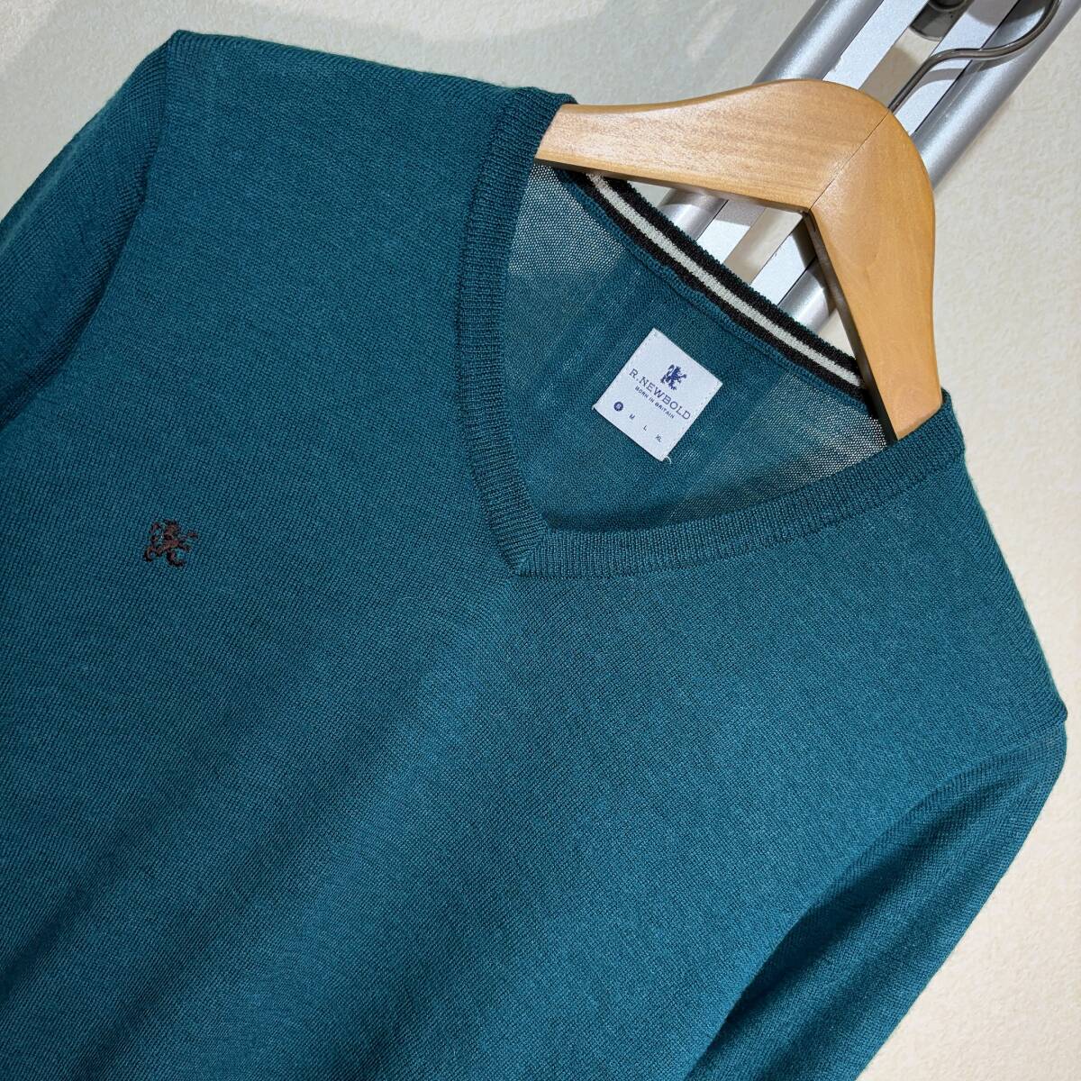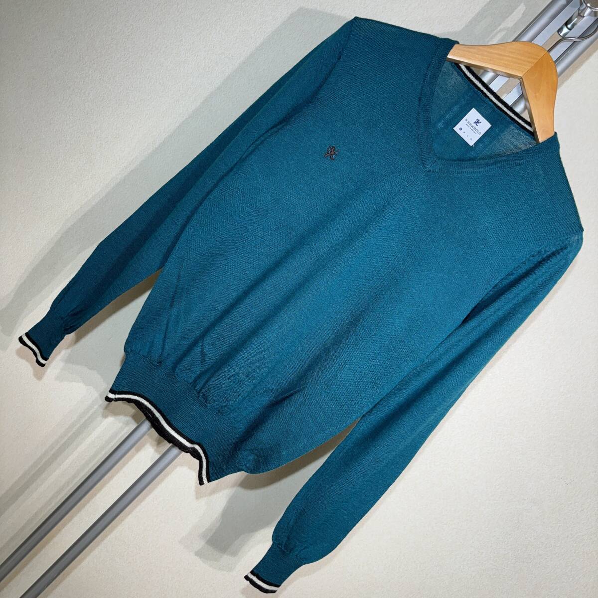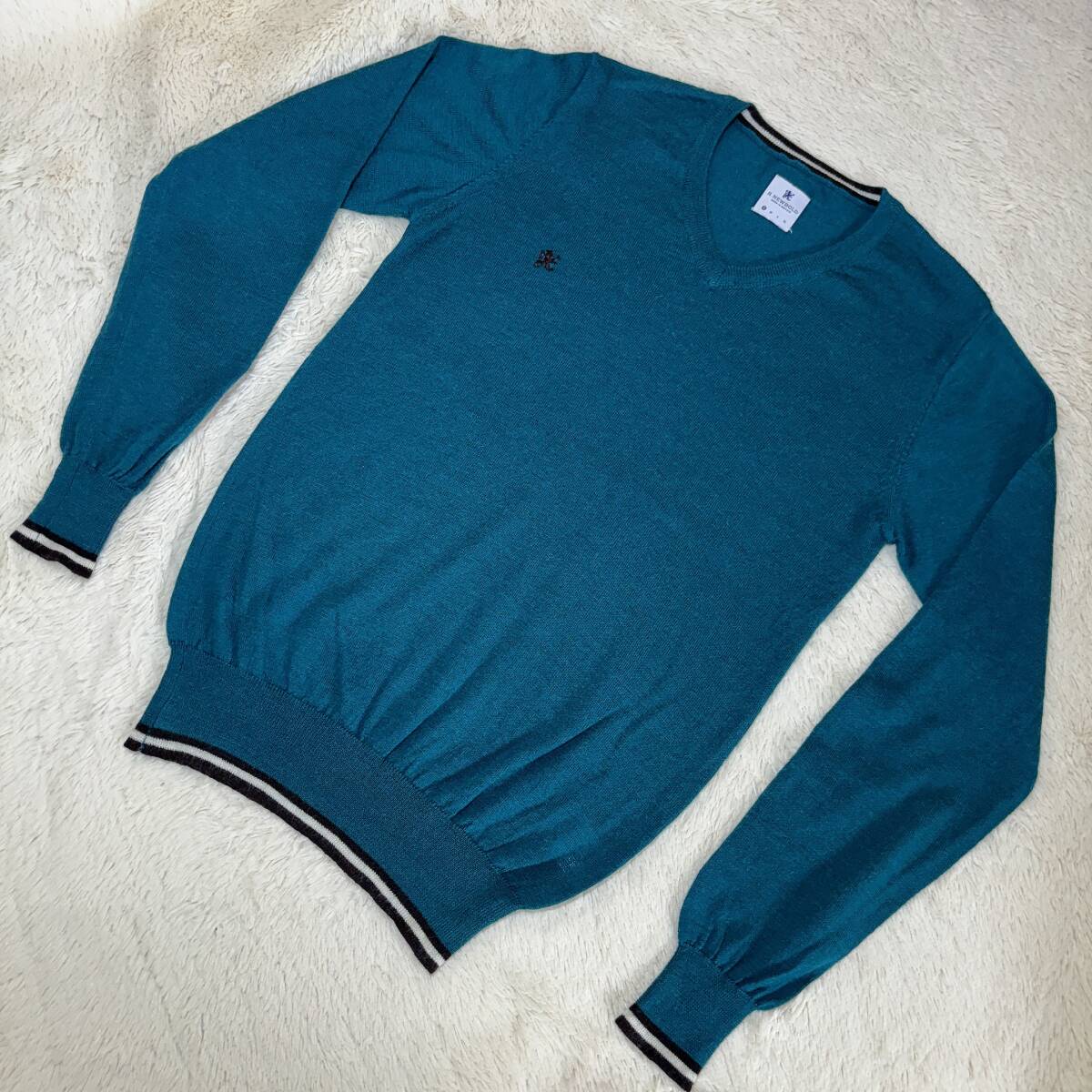 | X252■R.NEWBOLD/ポールスミス★エメグリーン/ワンポイント★Vセーター■S | ||||||||||||||||||||