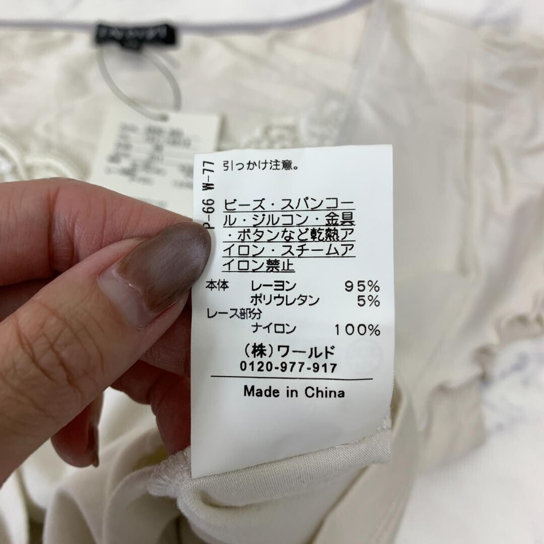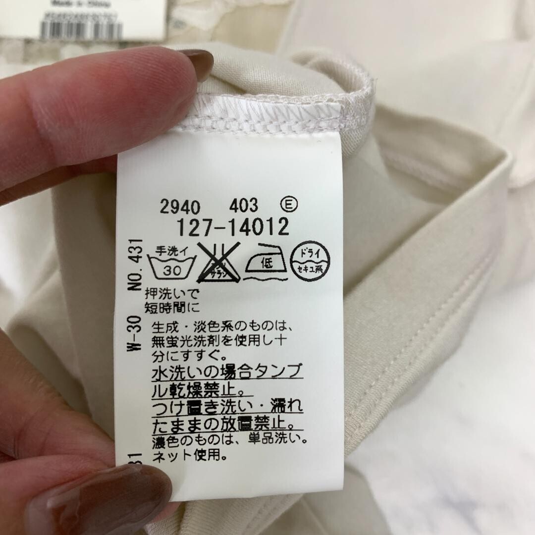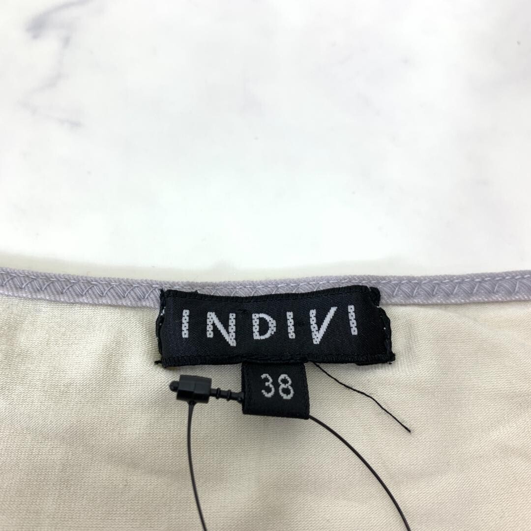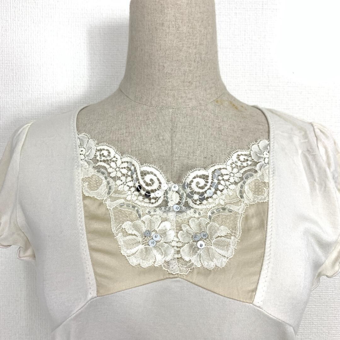 A4133 新品タグ付き インディヴィ 半袖Tシャツ レース INDIVI ビジュー スパンコール フレンチスリーブ ストレッチベージュ 38