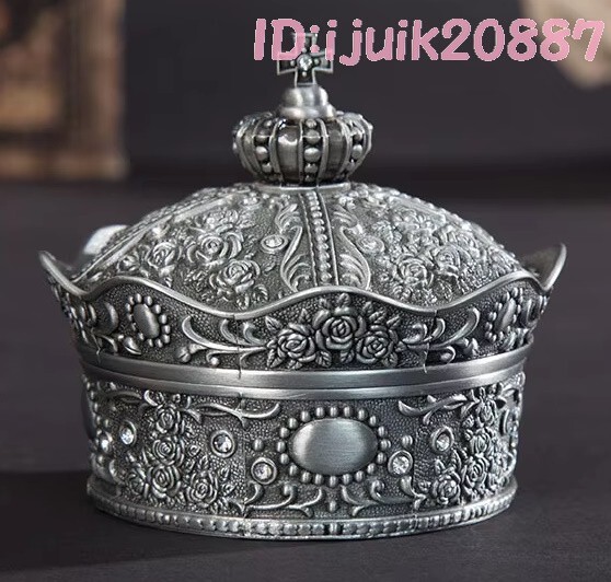 Yi1326: 王冠 小物入れ クラウン ジュエリー 保護 ボックス 収納 ケース 宝石箱 入れ物 アクセサリー レトロ メタル 花 おしゃれ 素敵
