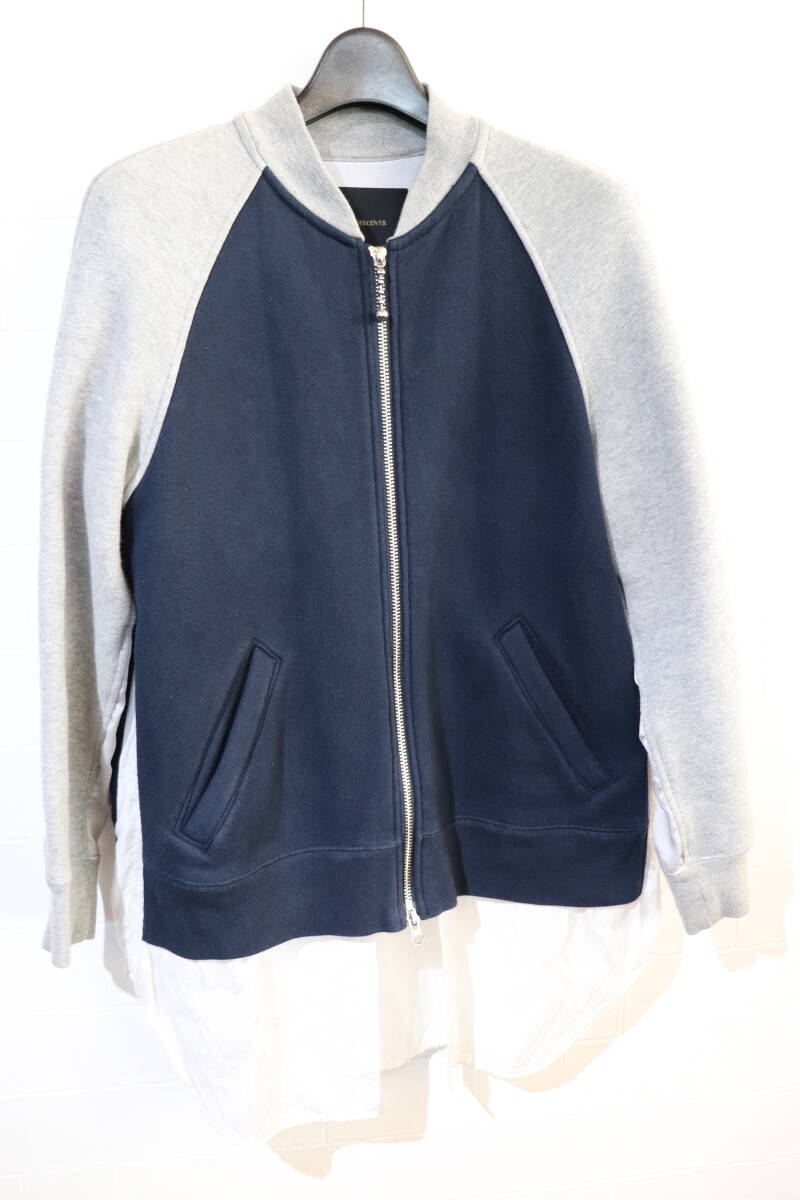 『送料レターパック対応可能   2014AW   日本製   UNDERCOVER   サテンブラウスドッキング・スウェットスタジャン   ネイビーグレー系    1サイズ』