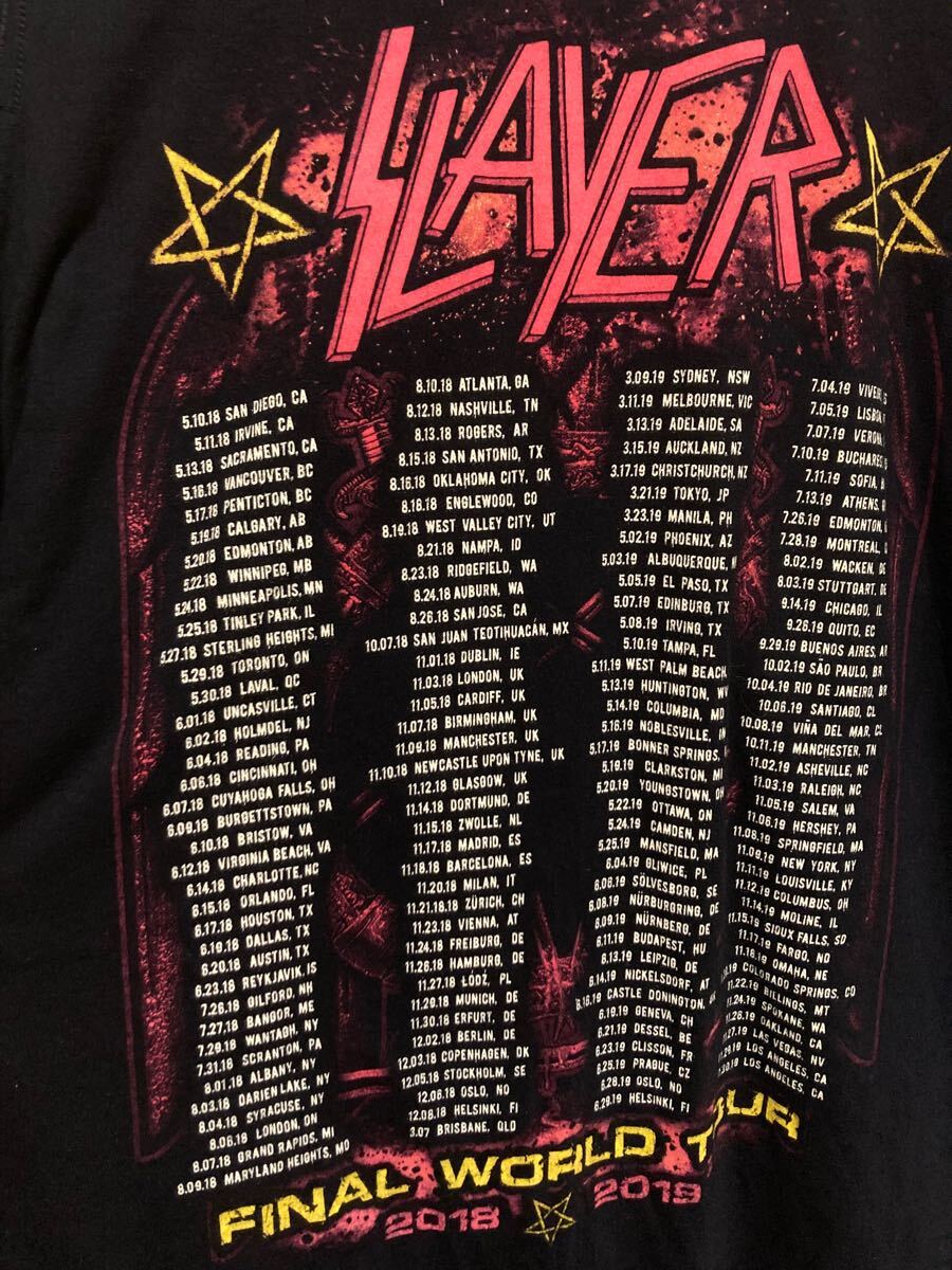 SLAYERのツアーTシャツです。 年数の経過したものですが使用感目立たず良好なコンディションです。 ▼サイズ(平置 ・表記:XL ・着丈:約80cm ・肩幅:約52cm ・身幅:約62cm ・袖丈:約20cm ★免責事項 ・ネコポス/宅急便コンパクト/ゆうパケット(ポストmini/ポスト/プラス)/定形外/レターパックは 簡易包装になりますので動作保証や発送事故/紛失の保険や補償対象外です。