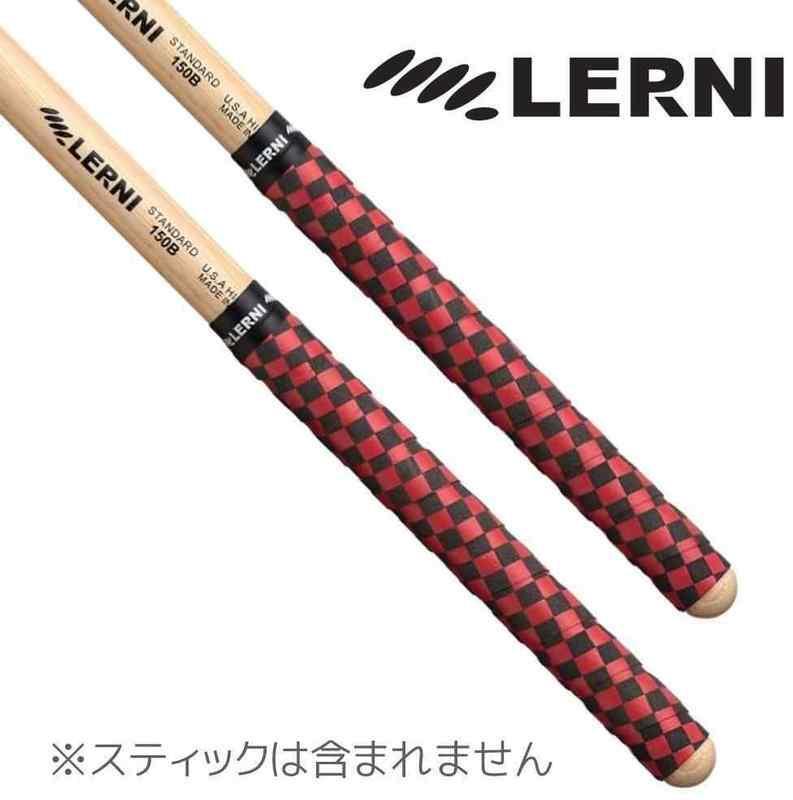 即決◆新品◆送料無料LERNI GT-CHE/N RED/BLK チェッカー柄(赤/黒) ドラムスティック用 グリップテープ 4枚セット(2ペア分)/メール便