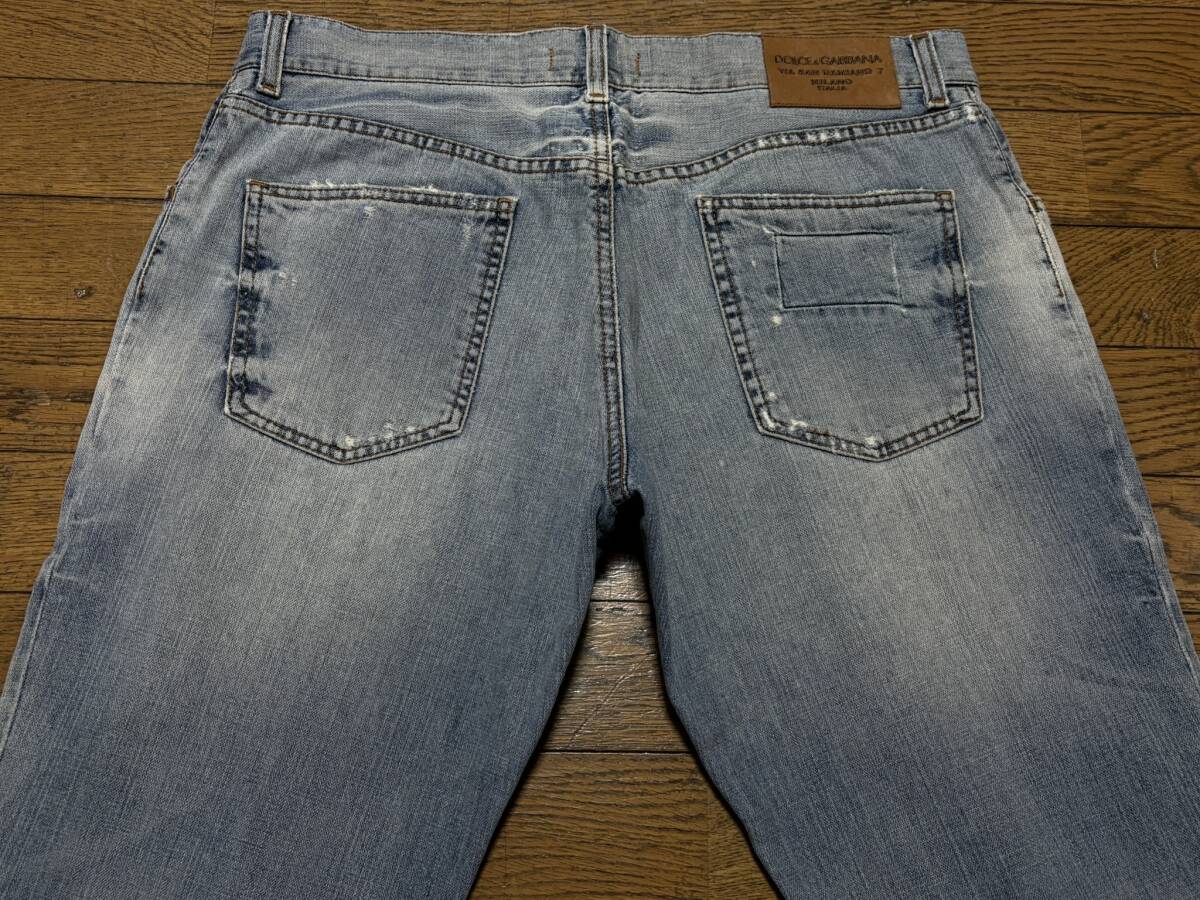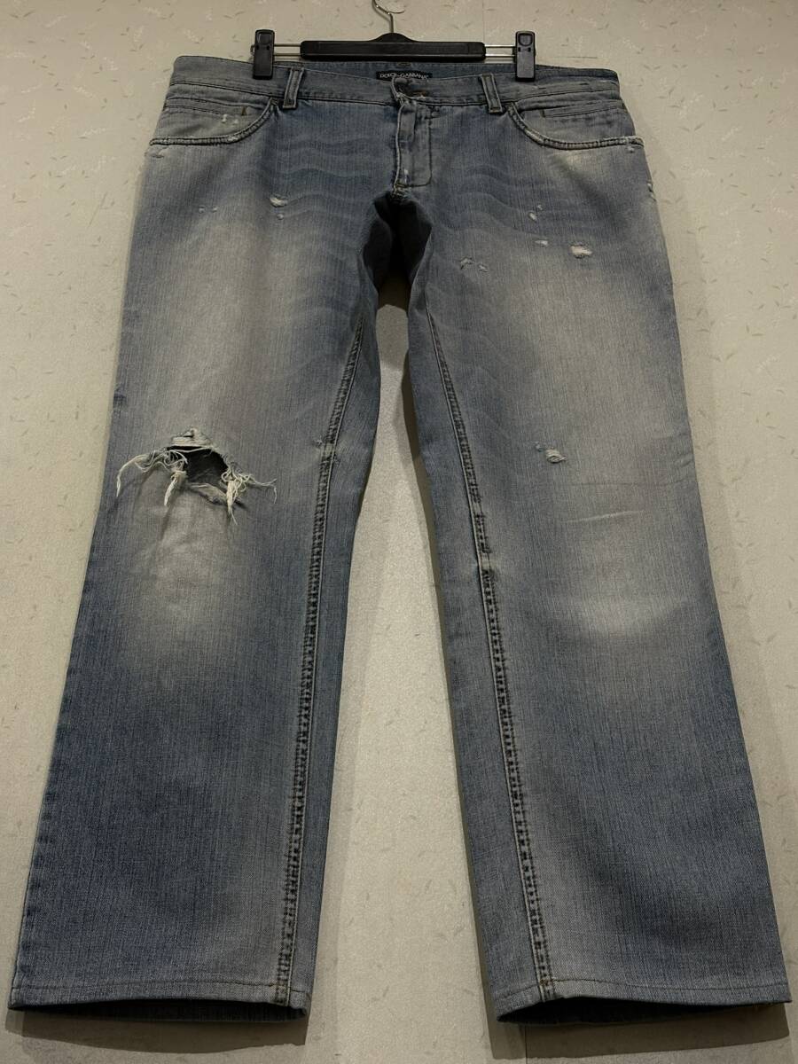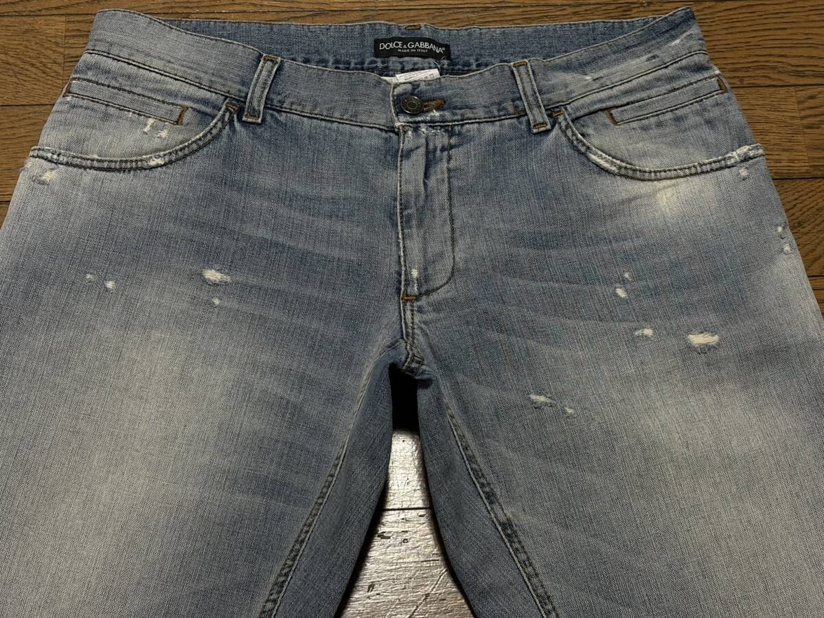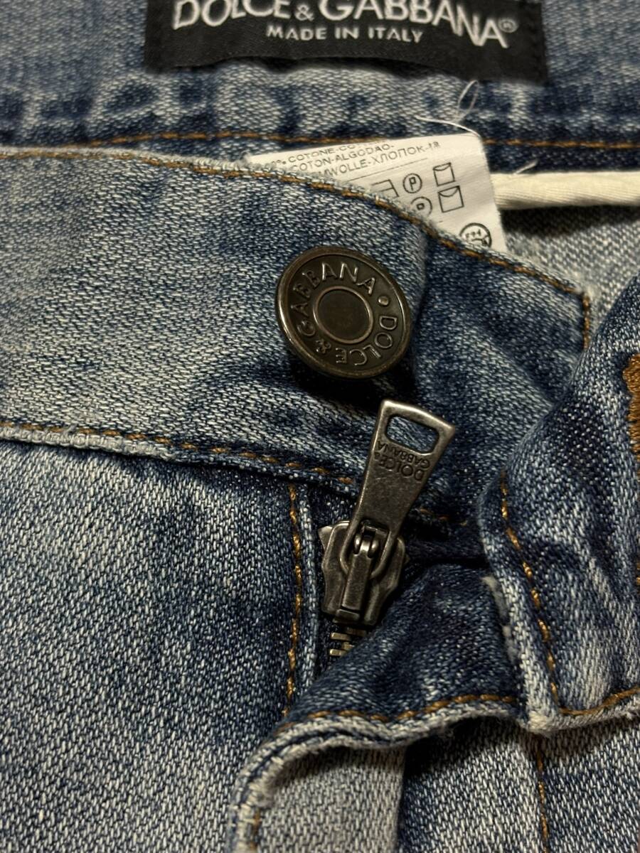DOLCE&GABBANA ドルチェ&ガッバーナ 14CLASSIC ロゴ刺繍パッチ ダメージ加工 デニムパンツ インディゴ  イタリア製 50     BJBE.A