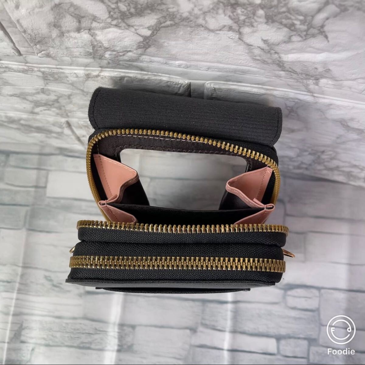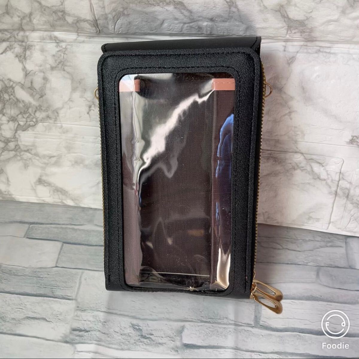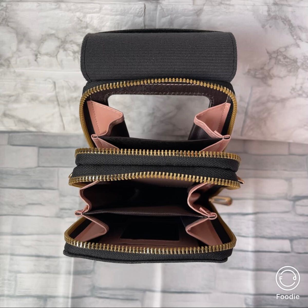 スマホケースとお財布が一緒になったシンプルなショルダーバックです!バッグに入れたまま背面スマホ操作ができとても便利です。約 高さ160.9mm、幅77.8mmまでが入る大きさでカードも3枚入ります。