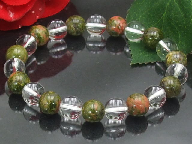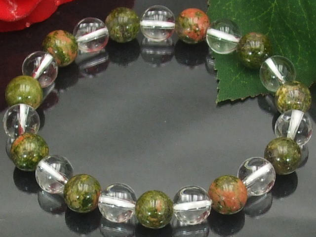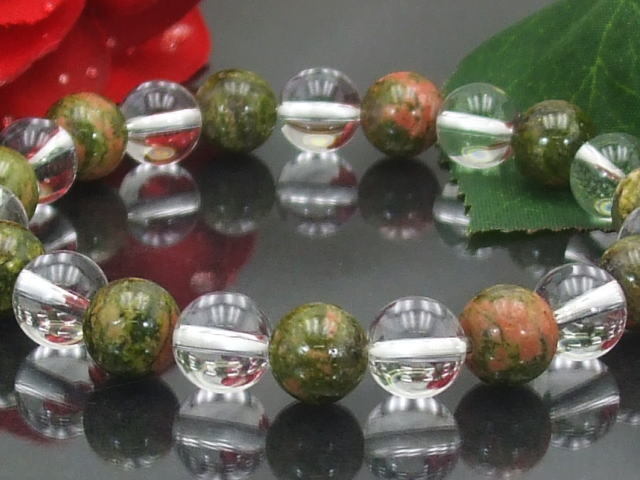ロロロ 素材 ロロロ ユナカイト8ミリ 水晶8ミリ サイズは約17.5cm(内径約16cm) サイズ変更は無料です♪