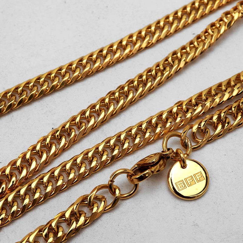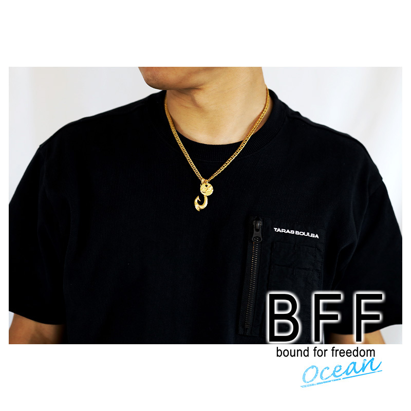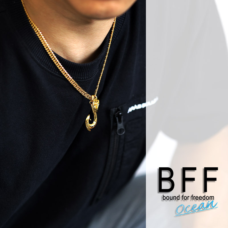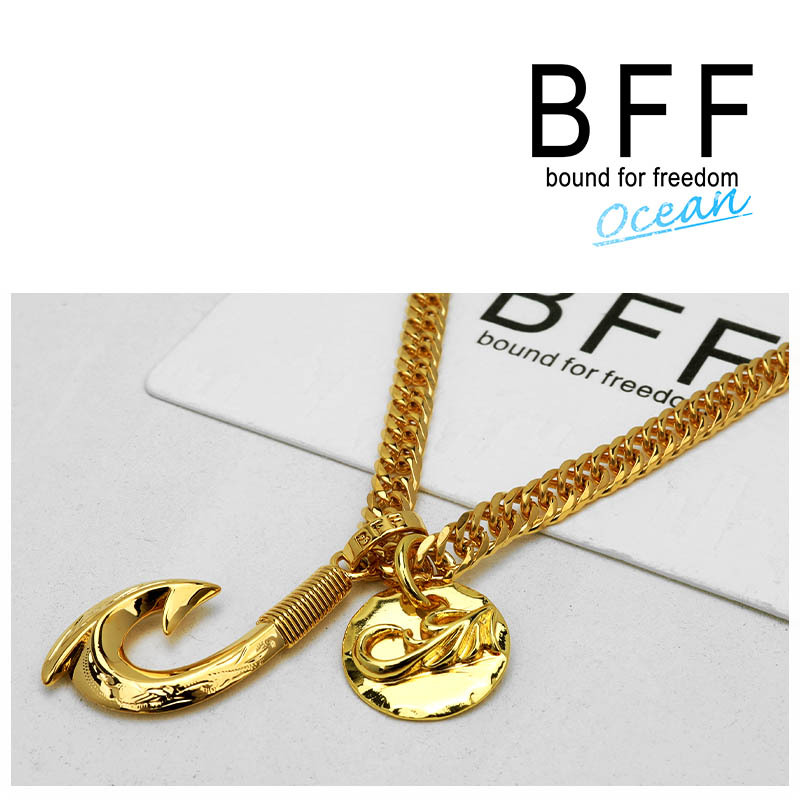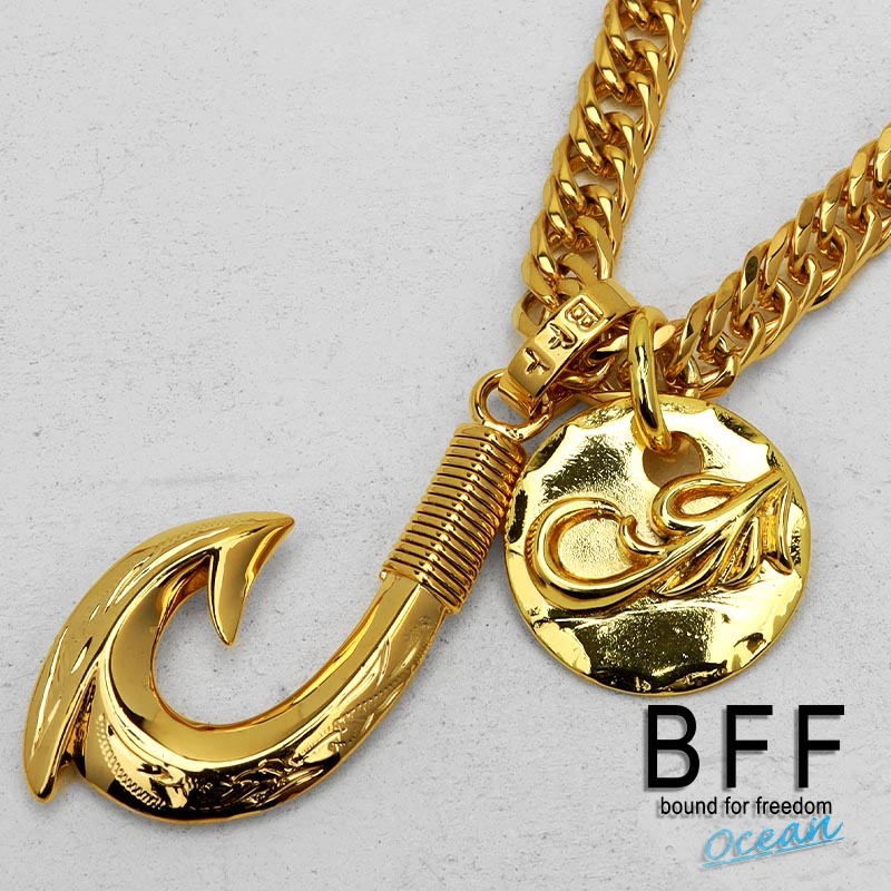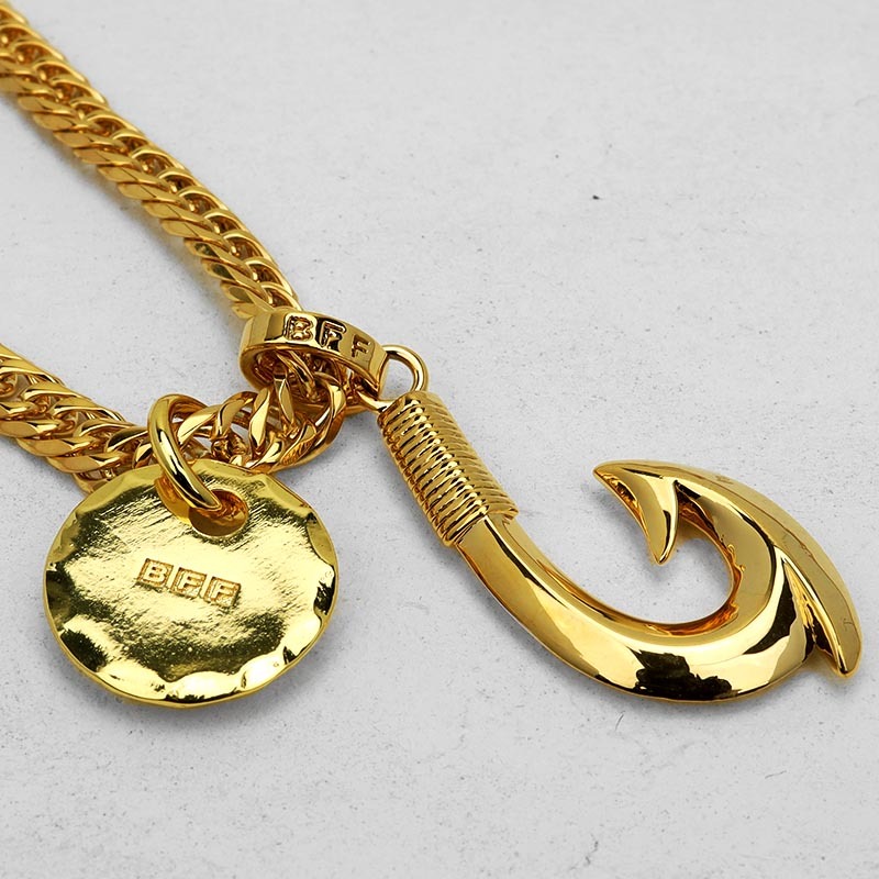 BFF ブランド フィッシュフックネックレス ダブル喜平 6面カット 釣り針 ステンレス 18K GP ゴールド 金色 専用BOX
