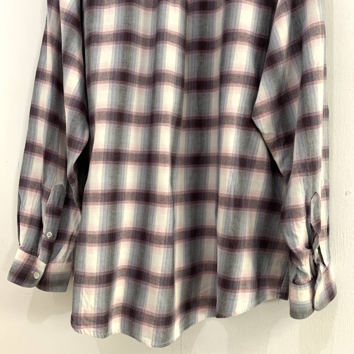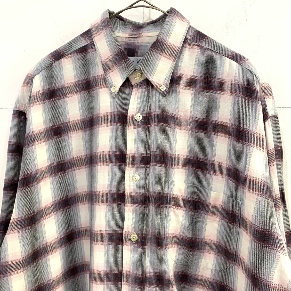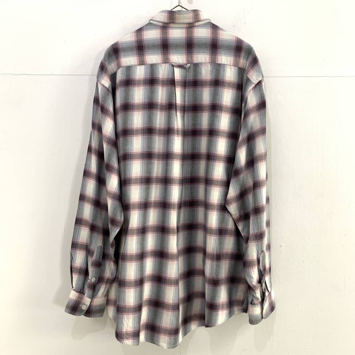 ☆Pat Collins フランス製 チェック柄 長袖ボタンダウンシャツ 綿100% ホワイト×グレー×ワイン サイズXL【レターパックプラス郵送可】K