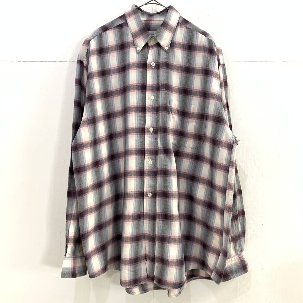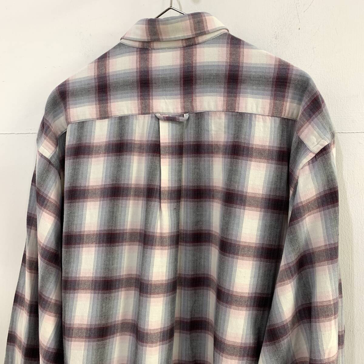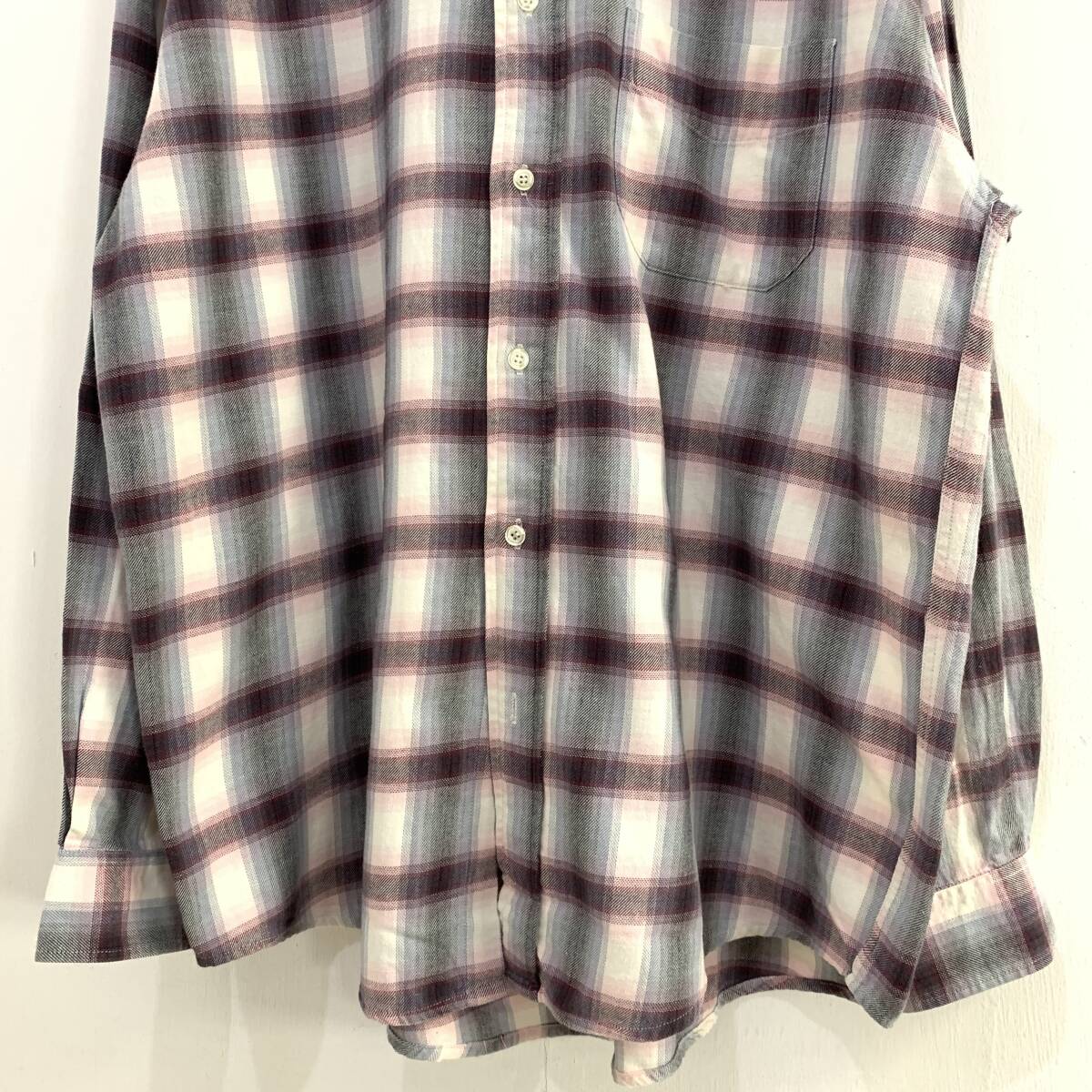 ☆Pat Collins フランス製 チェック柄 長袖ボタンダウンシャツ 綿100% ホワイト×グレー×ワイン サイズXL【レターパックプラス郵送可】K