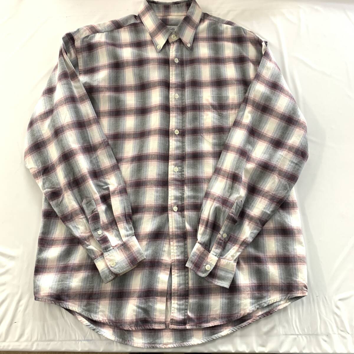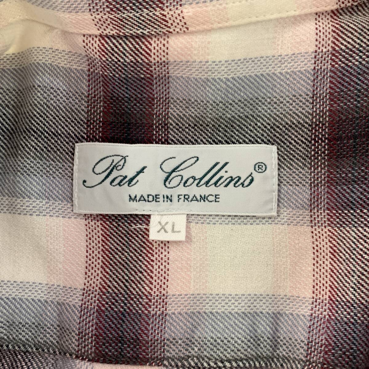 ☆Pat Collins フランス製 チェック柄 長袖ボタンダウンシャツ 綿100% ホワイト×グレー×ワイン サイズXL【レターパックプラス郵送可】Kの出品です。