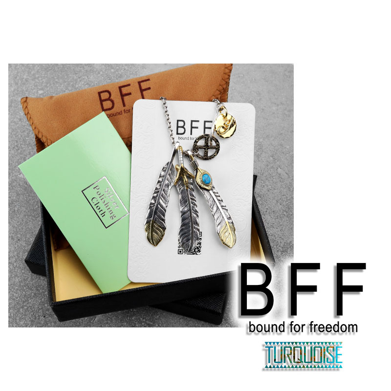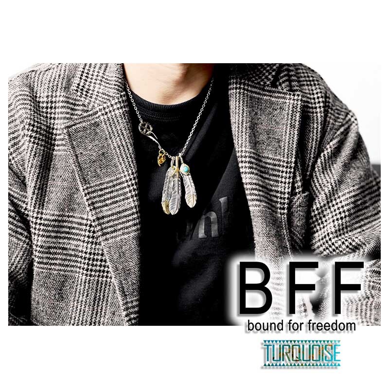 BFF ブランド フェザーネックレス メンズ シルバー925 先金 上金 ツイン 天然石 トルコ石 本革 唐草 専用BOX付属