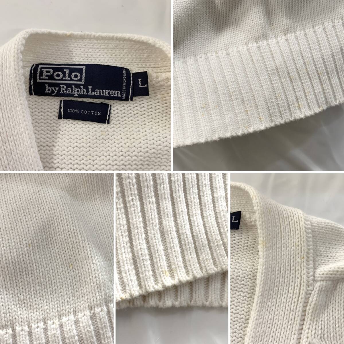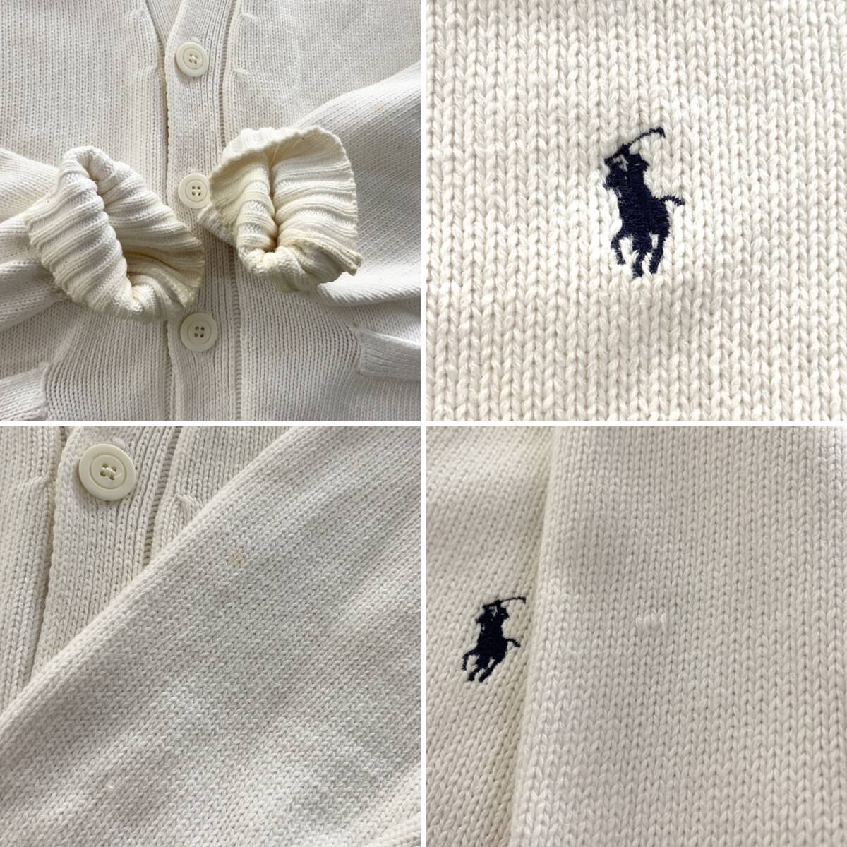 ☆Polo by Ralph Lauren ラルフローレン 90s Vintage Vネックコットンニットカーディガン ホワイト系 サイズL 綿【送料一律/同梱可能】Kの出品です。